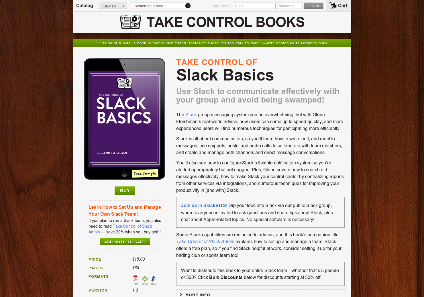 I’m the publisher of Take Control Books, and one of the editors of this title. We designed the 185-page “Take Control of Slack Basics” to help both new users who are feeling at sea after being dropped into a Slack group and more experienced users who want to use Slack more efficiently. The author, Glenn Fleishman, pays special attention to configuring Slack … See more