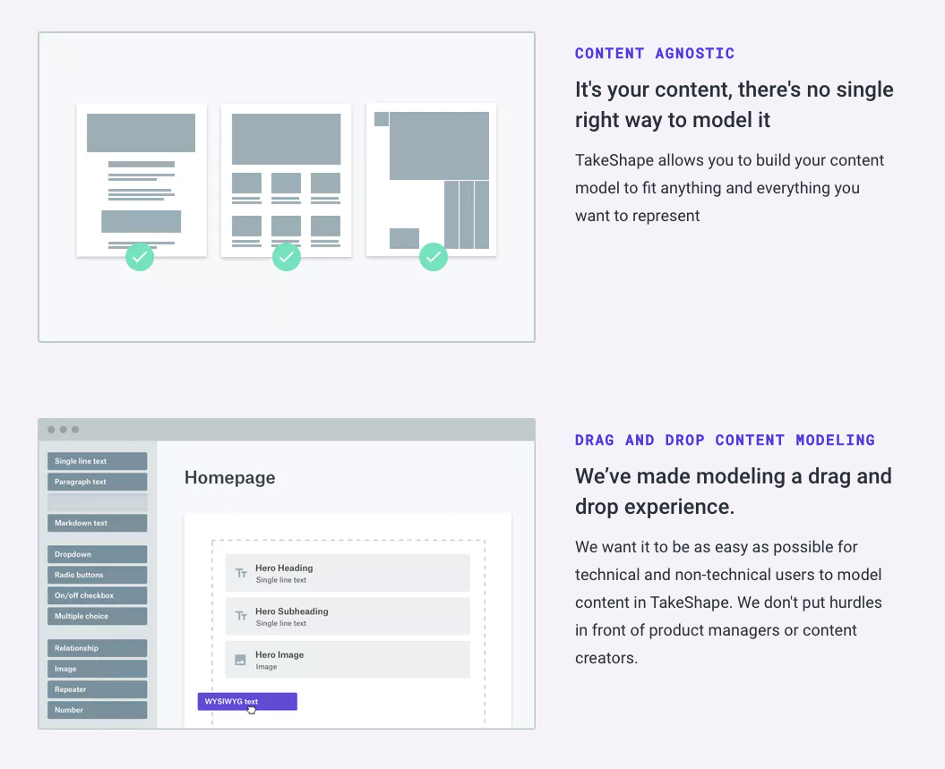 - Drag and drop content modeling