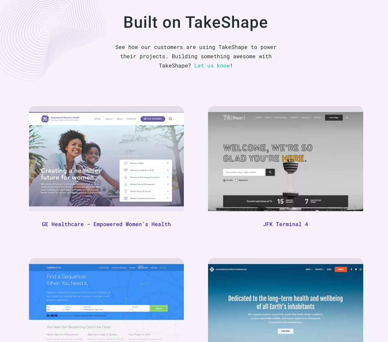 TakeShape is a great tool for rapidly testing out new ideas, figuring out what works, and continuing to iterate.