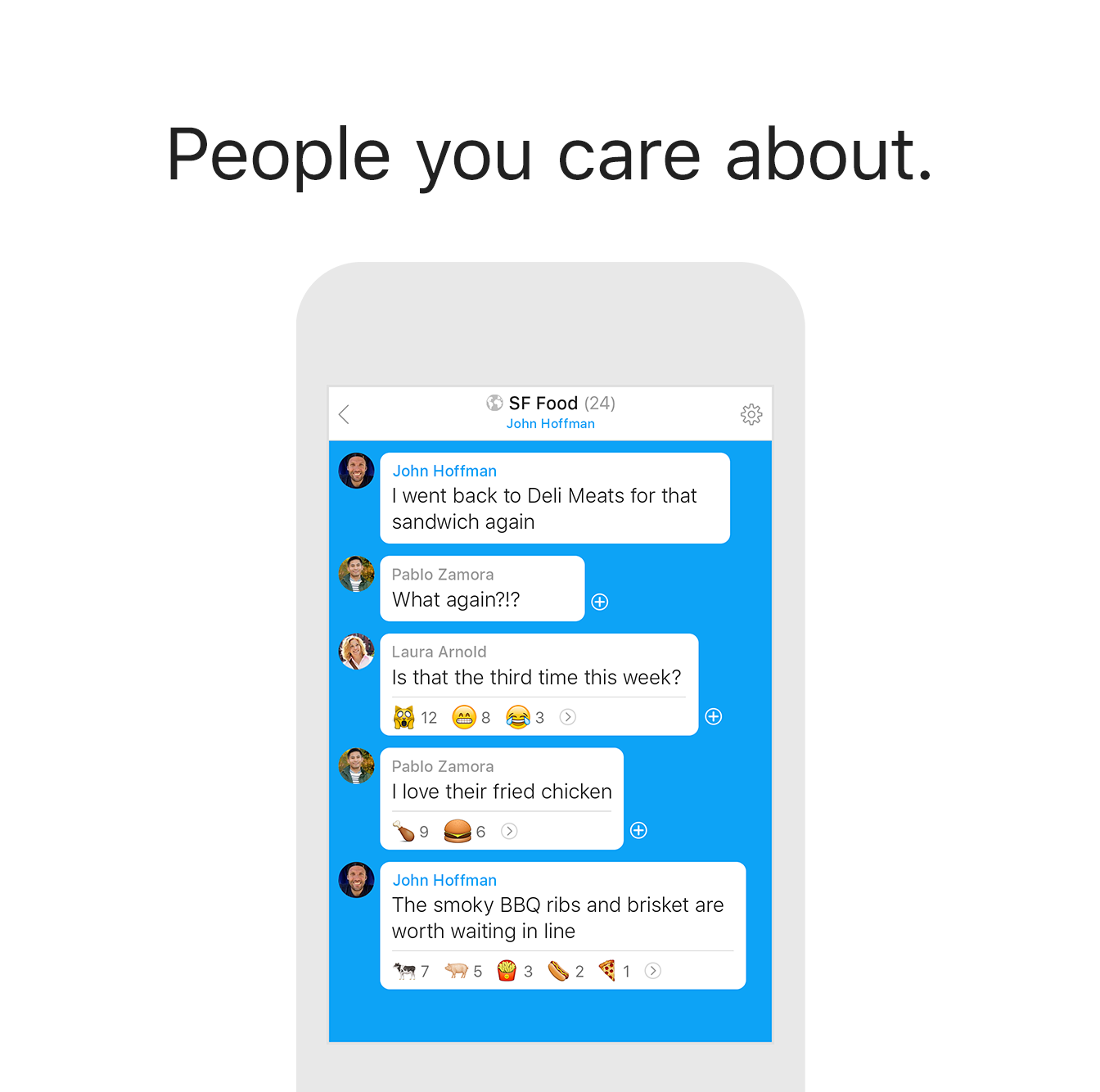 My friends Alex and Shayan (founders of Zoosk) launched this app today and I'm kind of loving it. It feels like a weird blend of Twitter, Peach, and group chat - really fun and refreshing take on messaging. I'm hoping we'll see some more people on it over the next couple of days because I've had a lot of fun so far.