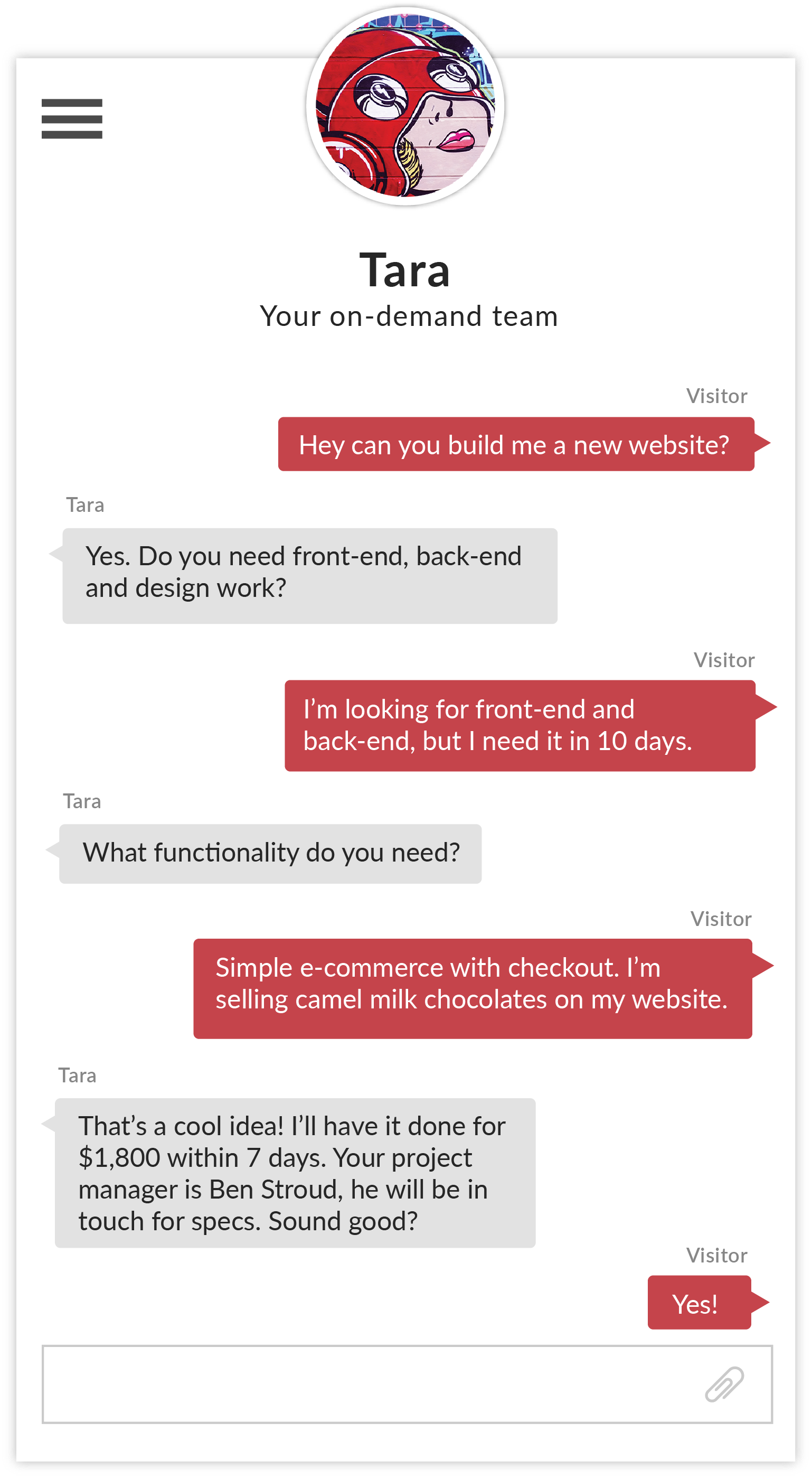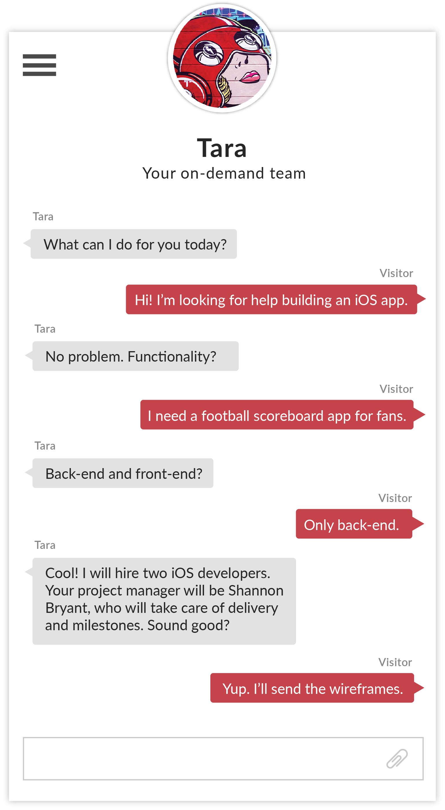 Tara is the on-demand team for small business, built on top of a community of 50,000 pre-screened developers, designers, growth hackers and copywriters. We’re YC W15 (Gradberry, Inc), and decided to launch Tara on a separat… See more