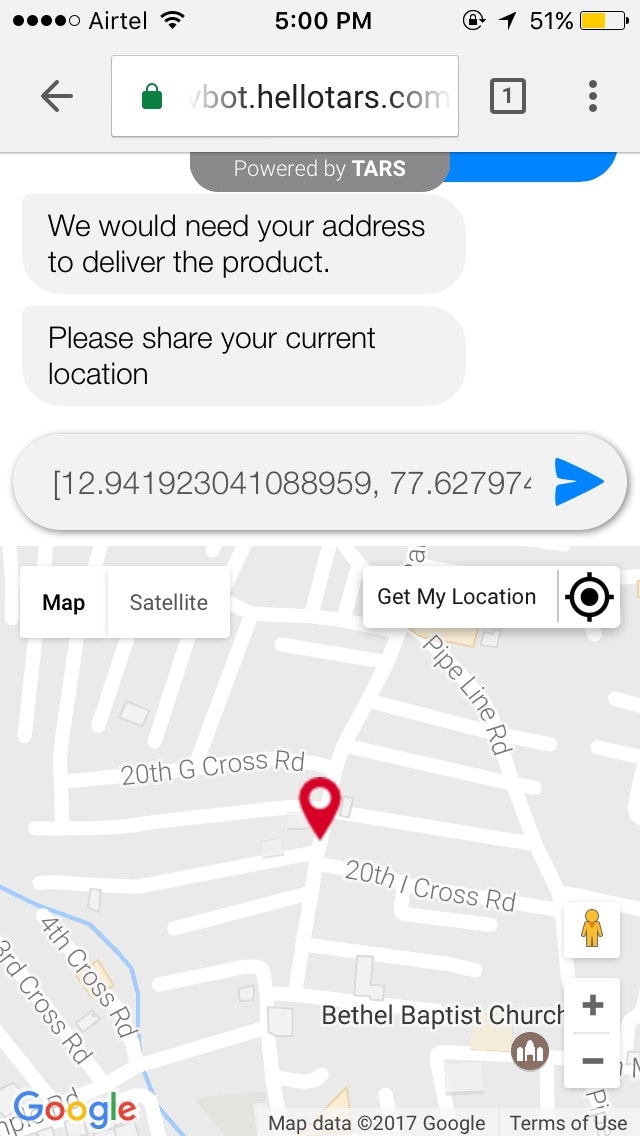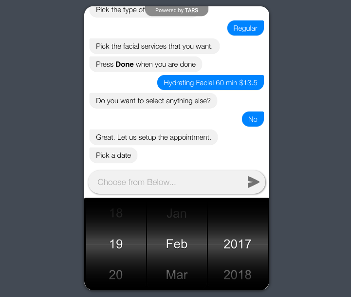 We feel web forms are boring and clumsy. And we wanted to turn that into a fun and engaging experience. So we built TARS, where a chatbot asks questions one at a time and user responses are saved as data input.