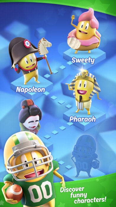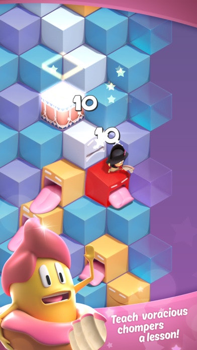 Help Sweety and his friends to get rid of insatiable chompers by jumping on them! Avoid obstacles and use bonus-cubes to pass as far as possible!