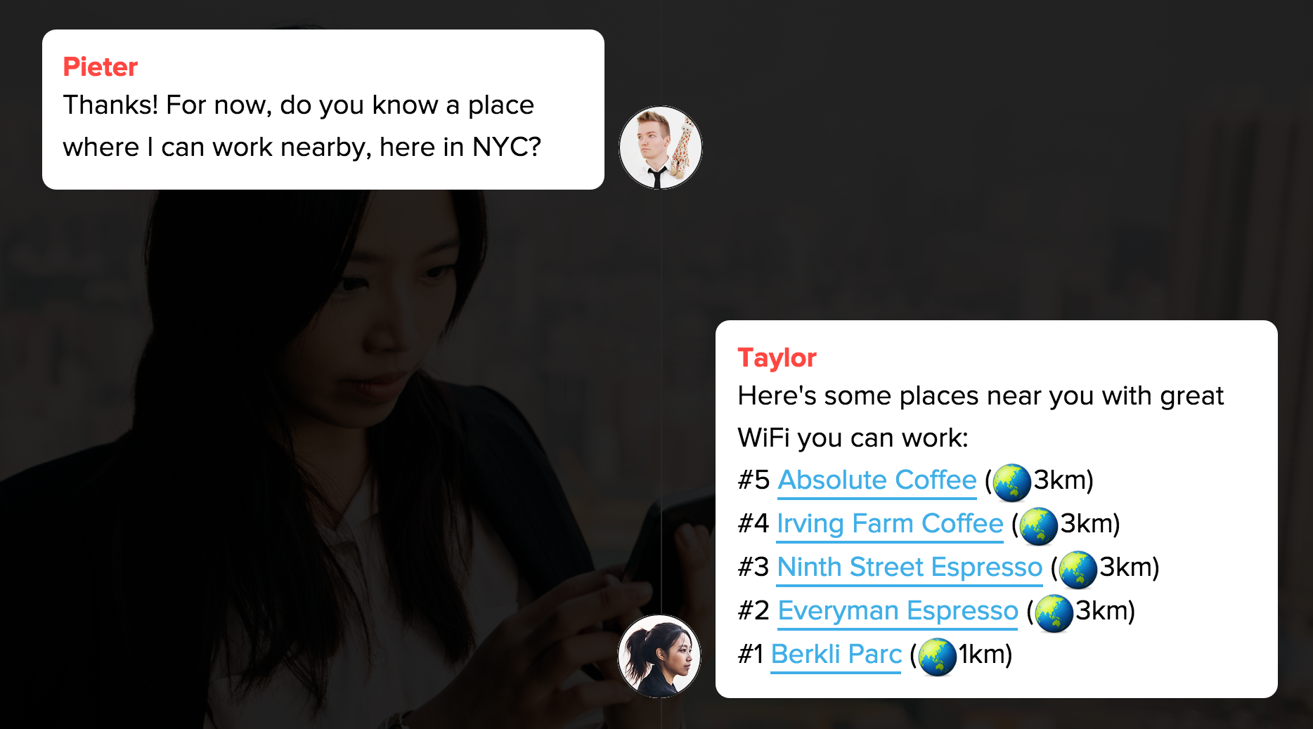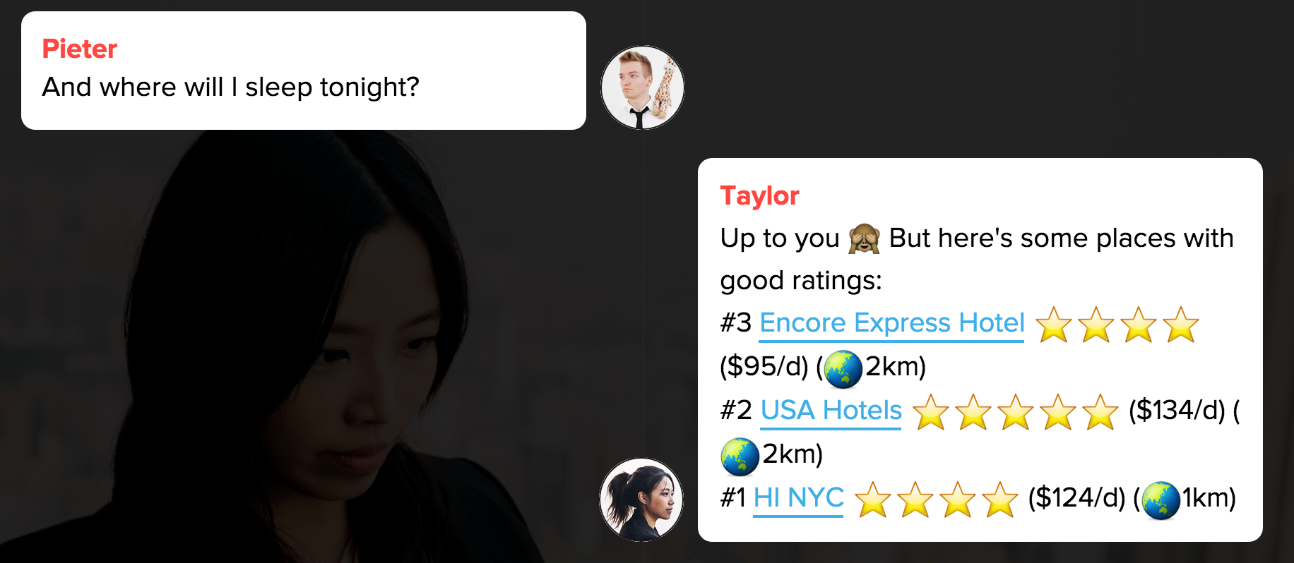 This is great. Another phenomenal project by Pieter. The only downside is that Telegram (at least the web apps) are buggy for me. I got stuck on the location prompt. The native iOS app is great though. There's not a lot of info about San Diego, CA but I was able to get recommendations for places to go to based on my budget and preferences (pulls this info in… See more