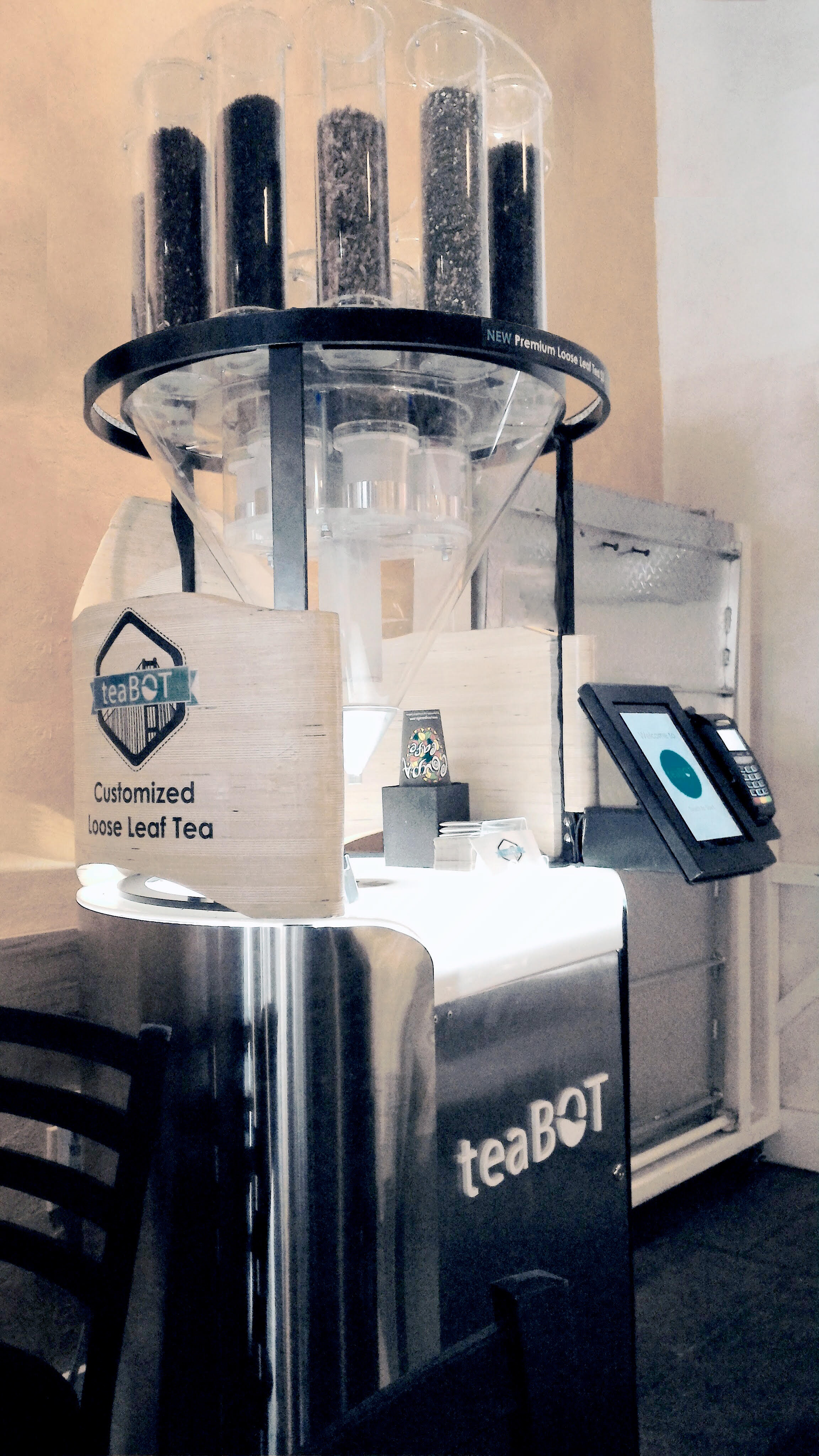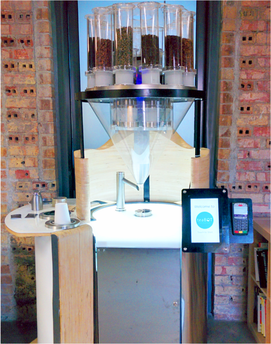 teaBOT is in the S15 batch of Y Combinator. We have one in the office and I'm addicted to my custom gunpowder + peppermint tea blend. They're live at Coupa Cafe in Palo Alto if you'd like to check one out.