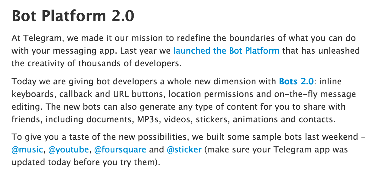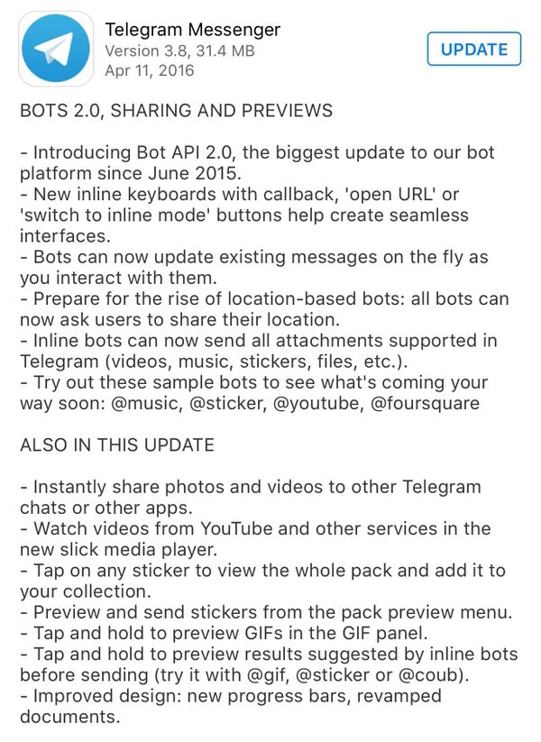 This is amazing... on the eve of F8, Telegram drops Bot Platform 2.0 and new Sharing and Previews.