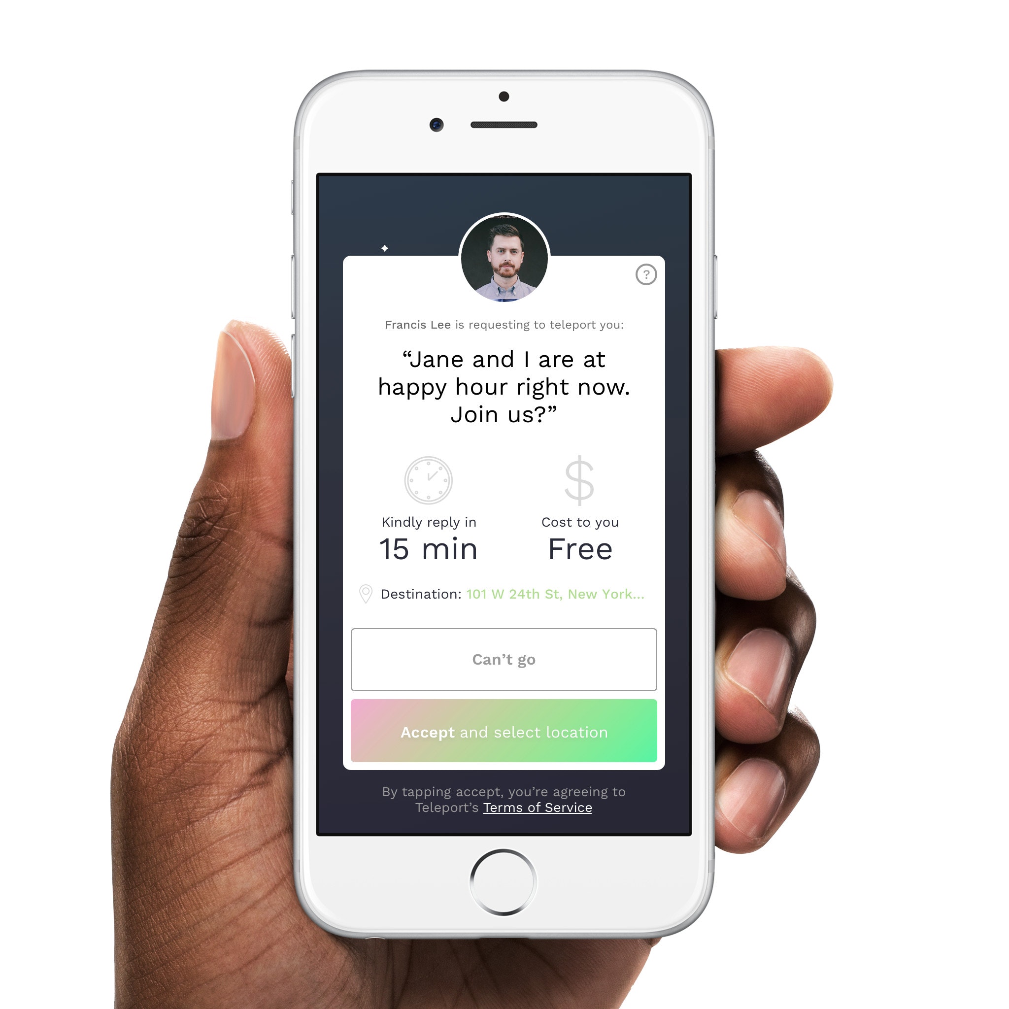 Hey everyone! I’m the cofounder and designer at Teleport. Our team built Teleport because we were exploring ways we could improve relationships with the important people in our lives. We realized that one of the best ways to do that was to spend quality, face to face time with each other, and Teleport is our attempt to make that as easy as possible!
