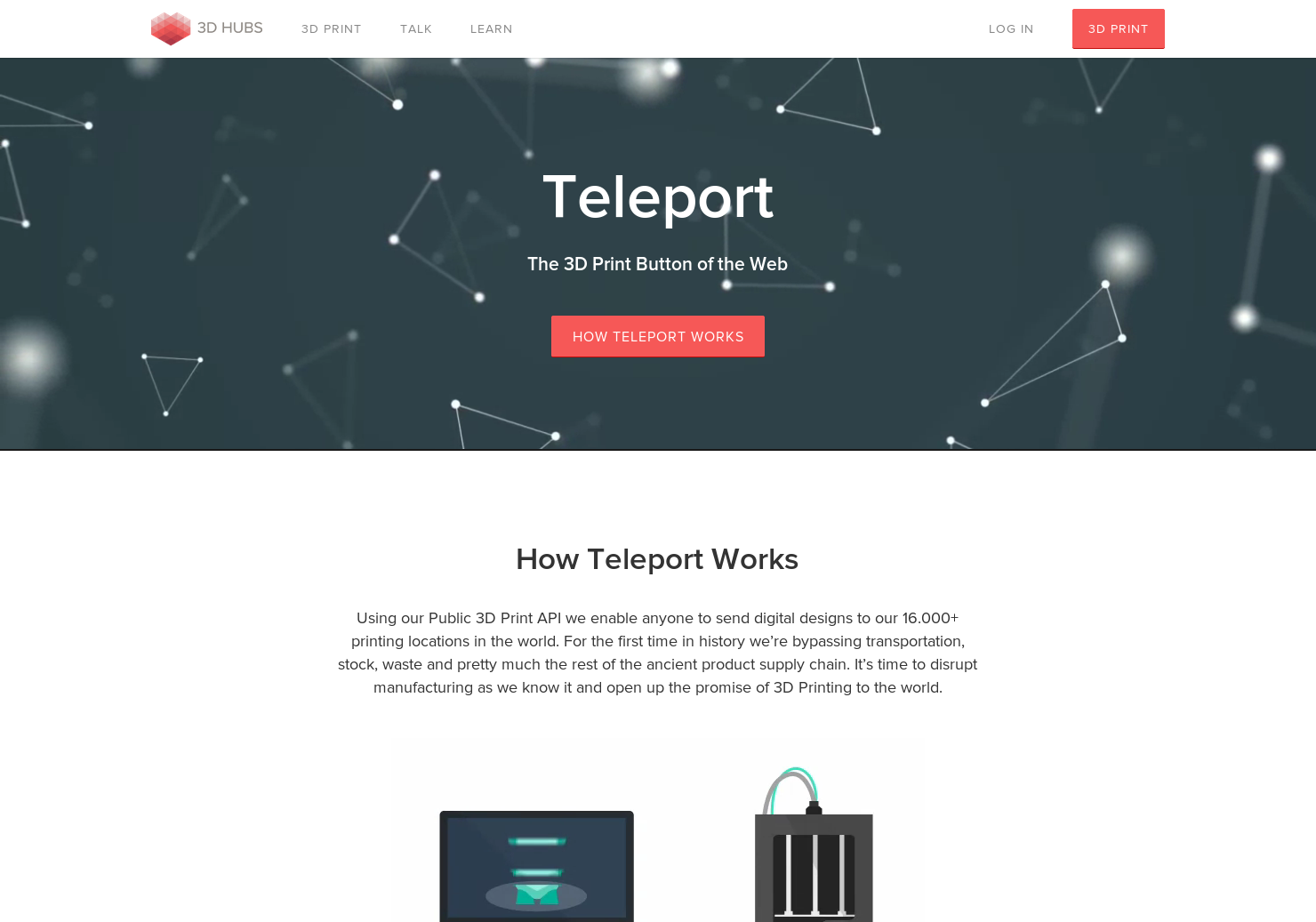 3D Hubs is a network of 3D Printers, providing local access to 3D Printing in almost every neighborhood in the world. Think Airbnb for 3D Printing.