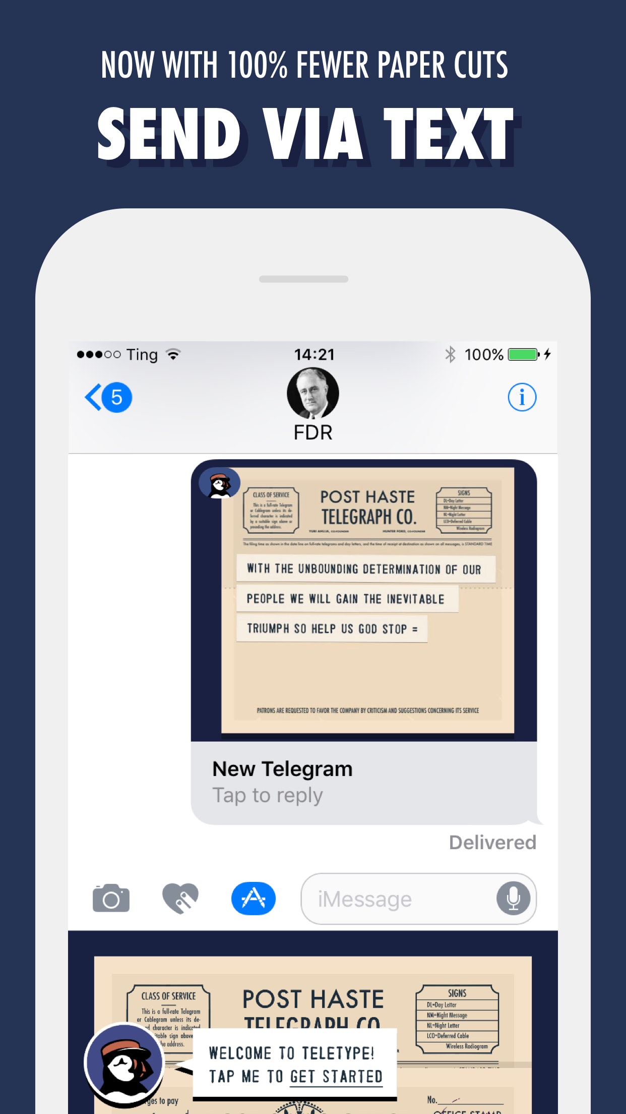 We couldn’t be more excited to launch Teletype, a revolutionary new iMessage extension aimed at disrupting the powerful telegraph industry. Your move, telegraph tycoons! 😏 Many thanks to @_jacksmith for hunting us!