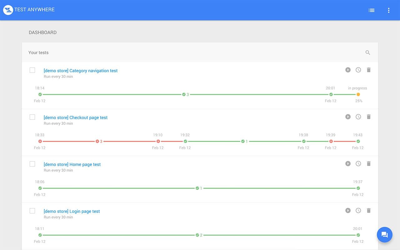 We are trying to automate website and web application testing, make this proccess more transparent and less time consuming. And also make it available for non-coders. You can create test flows with our visual test builder (Chrome App). Schedule tests to run over period of time. And if something goes wrong you will be no… See more