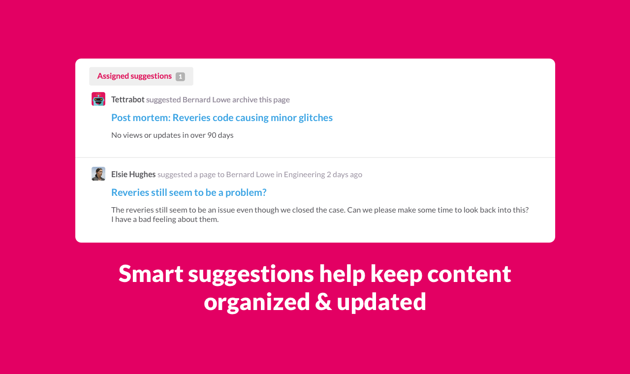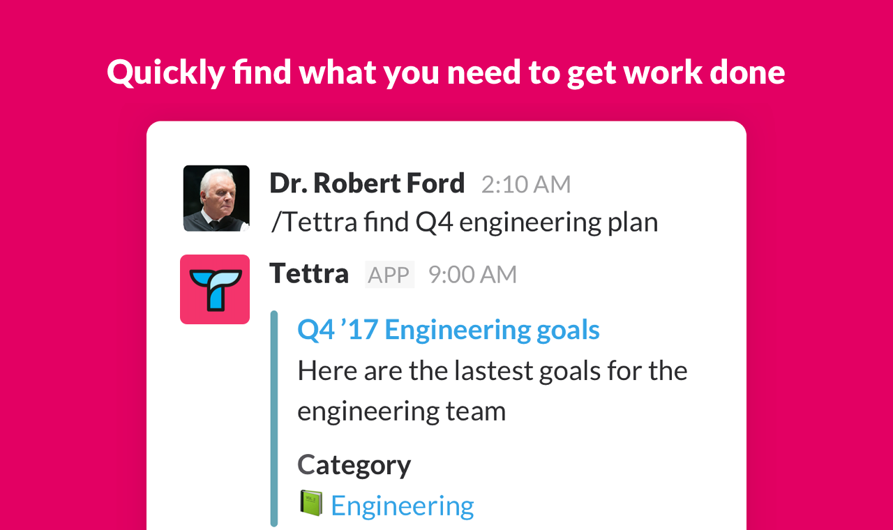 The responsiveness of the Tettra team is also fantastic. My favorite SaaS company to come out of Boston - they fill a very important void in a Slack stack.