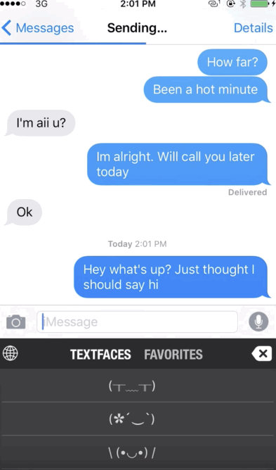 TextFaces is the easiest way to send ...well Text Faces to your friends, period! Send TextFaces right from your keyboard. (⌐■_■)