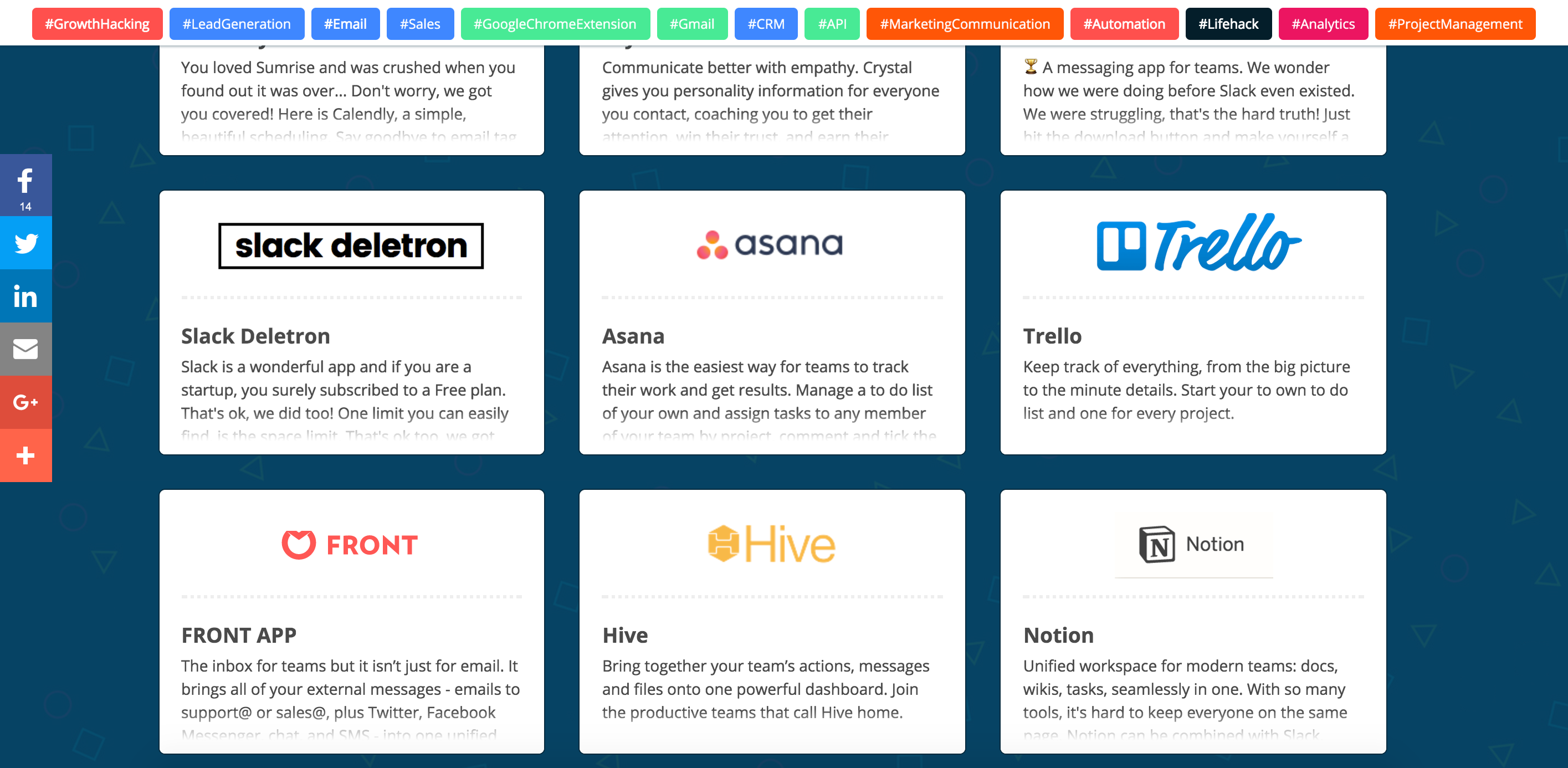 Experiencing growth here at SocialWall.me, we know to what extent certain tasks can be time-consuming and tiresome… you know how it is ;) This is why we have decided to gather all the best tools we use in a single page, helping entrepreneurs to scale fast and making their lives easier. From community management to marketing, including sales and d… See more