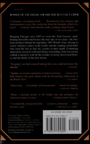 This is both the story of the 1893 World's Fair and one of the first known serial killer. It is a tough book to put down because you are oscillate between fact and fiction, research and detailed, harrowing storytelling, Erik Larson has done an amazing job of keeping the reader hooked on newly discovered history and the thrills of the best fiction.