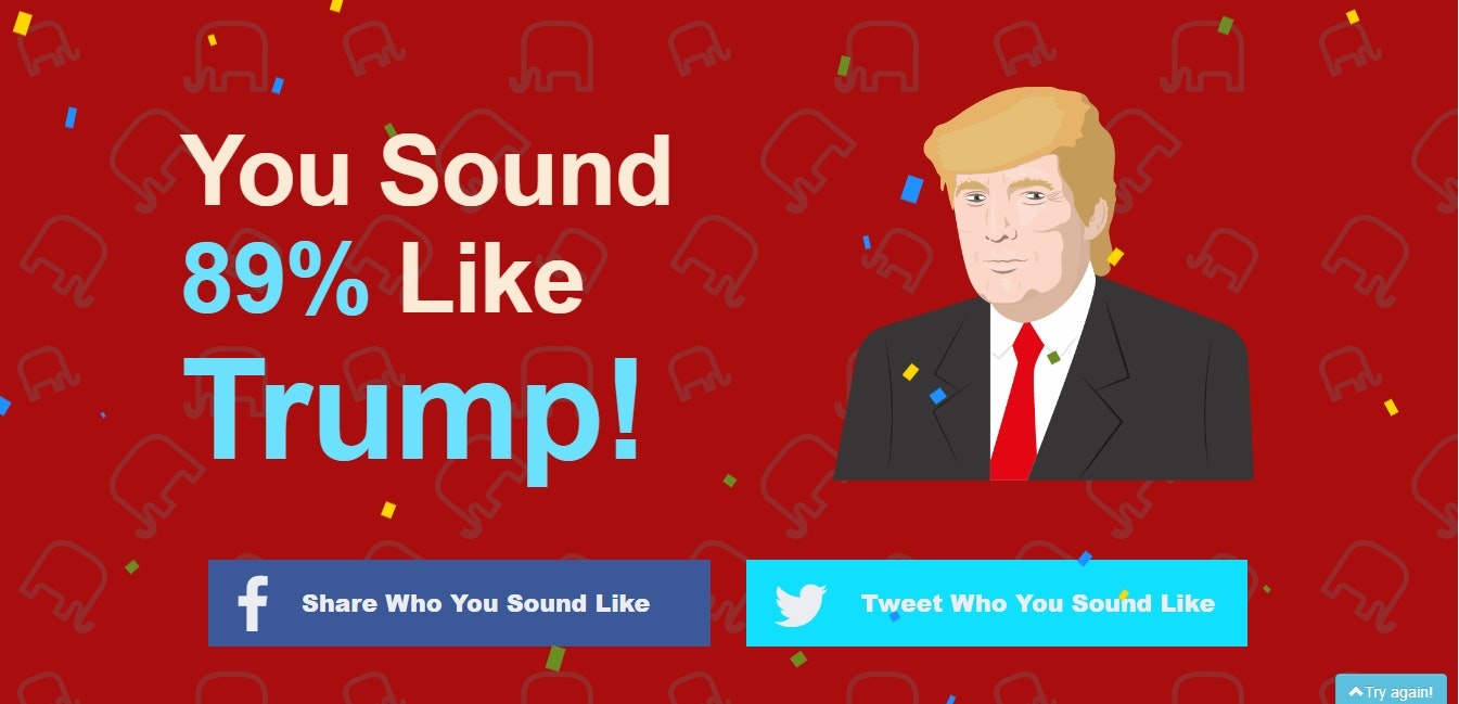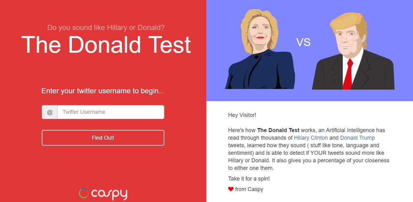 1. Uses Machine Learning to tell you if your most recent 15 tweets sound more like Hillary or Trump.