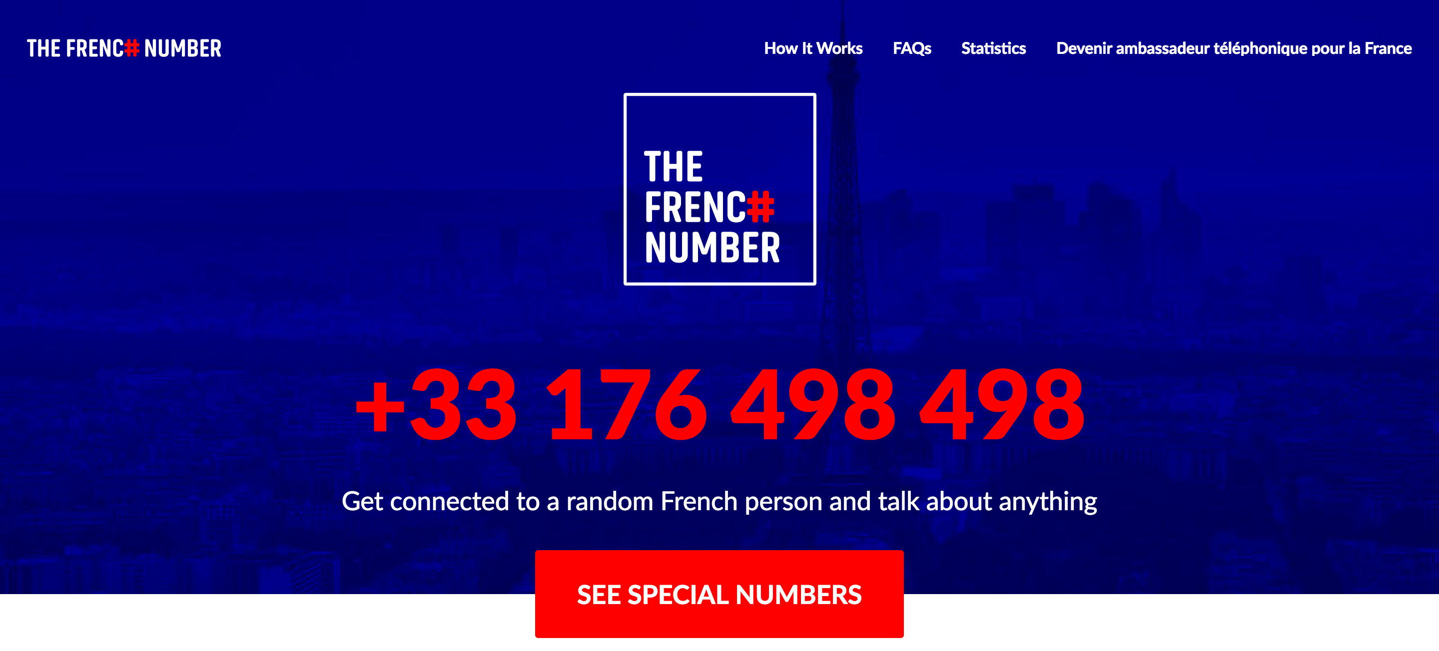 As a Swede we had a great time (and fun) with "The Swedish Number" earlier this year. I hope the French people will get the same great experience as we did talking to random people all around the world.