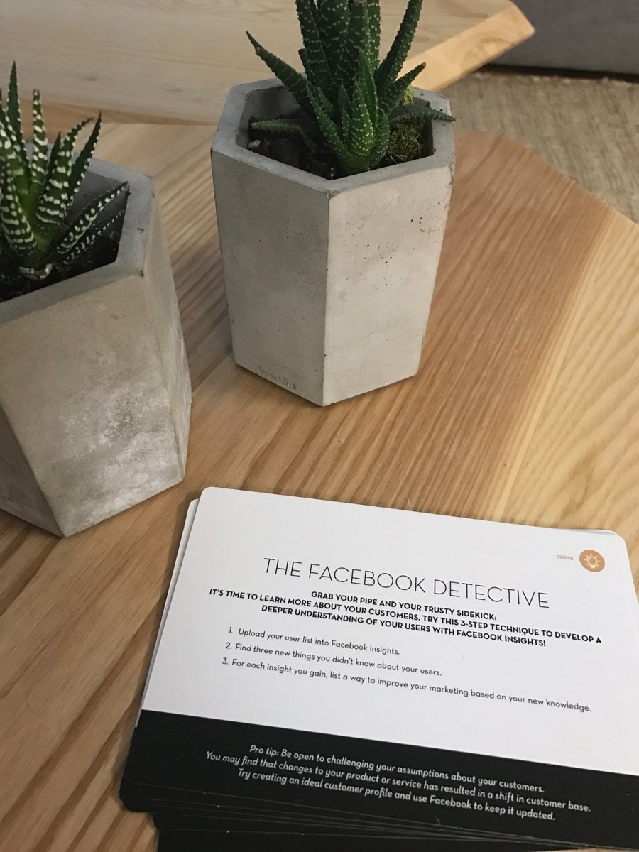 The growth hacking box is filled with 6 sets of cards that are designed to help you think differently about your tactics and actionable tips to improve them. Everything from drawing ideas out from team members to how to acquire, convert, and retain customers, and beyond. The idea is to step away from your computer, and think out the 'box'.