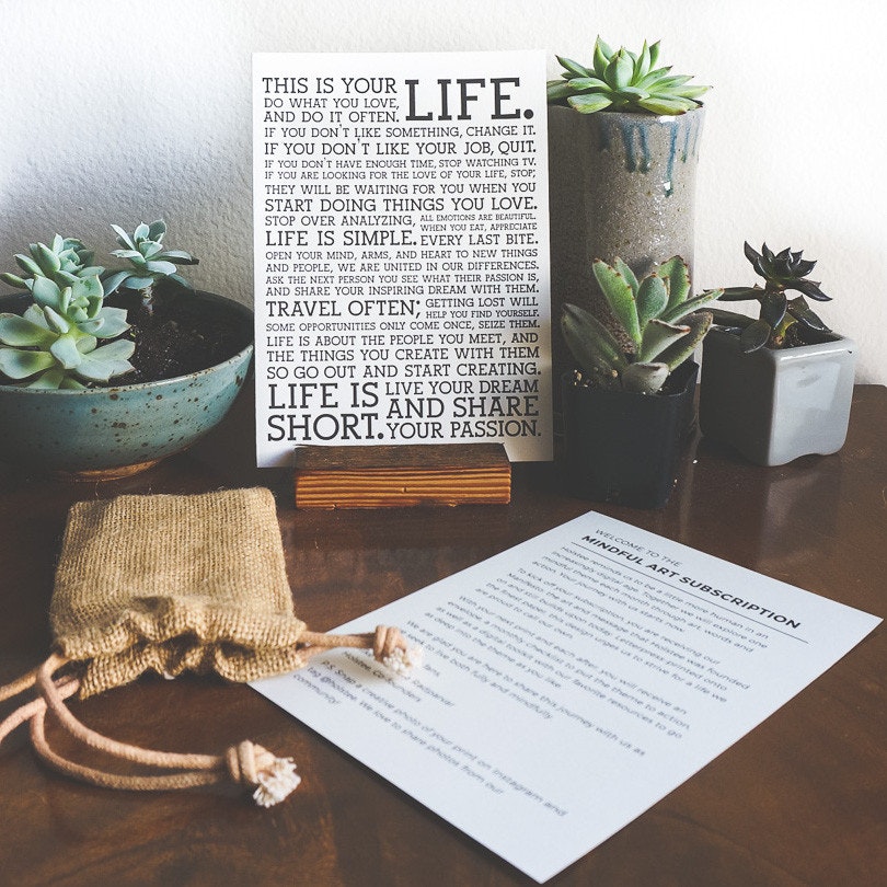 Hello! Dave here from Holstee. We started Holstee nearly seven years ago and since then we have been exploring what it means to both live fully and mindfully. Now with the Holstee subscription we explore a single mindful theme each month through art, words, and action. Would love to hear your thoughts!