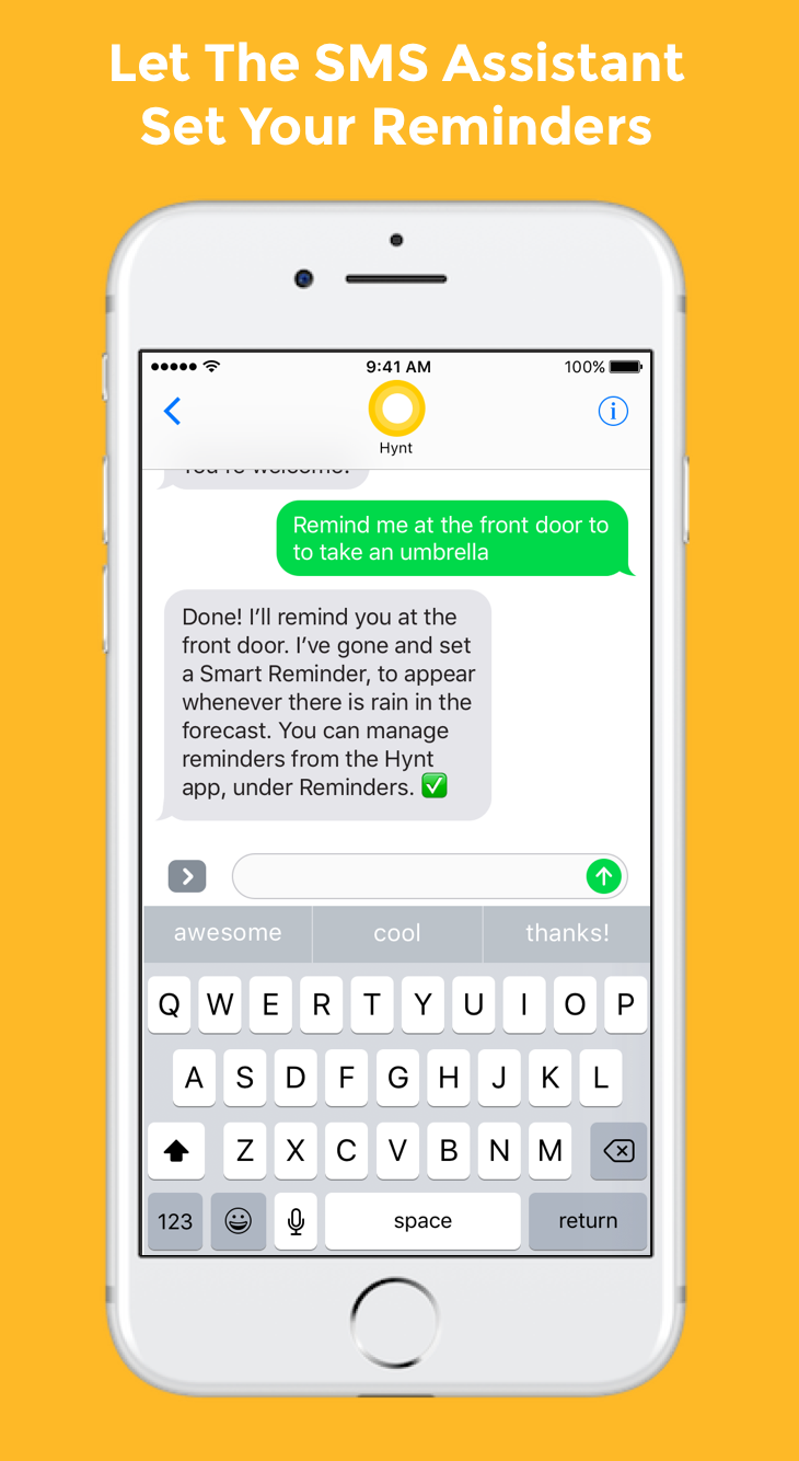 Hynt is a way to get reminders and trigger smart home controls at just the right time and place. It’s powered by a tiny device called the Hynt Token.