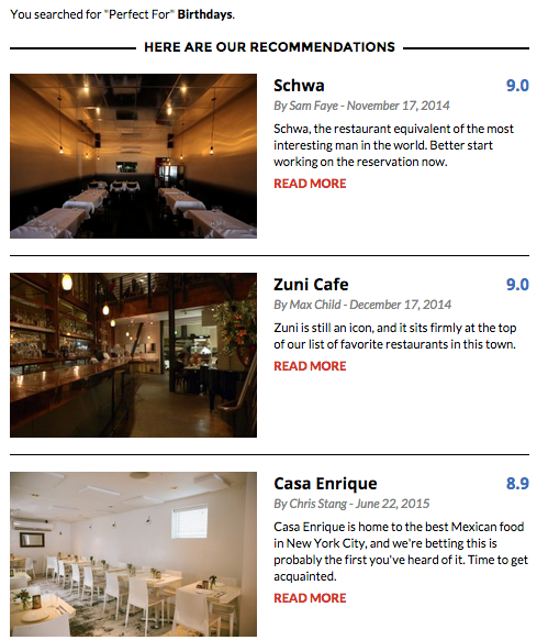 Hey Product Hunt community. Glad to be here. Just a little background on The Infatuation. We launched this as a side project to our full time music industry jobs five years ago, simply as a resource for our friends. Our goal: to create quality, trustworthy, credible, and (hopefully) funny restaurant reviews that cater to the average diner. We found that peop… See more