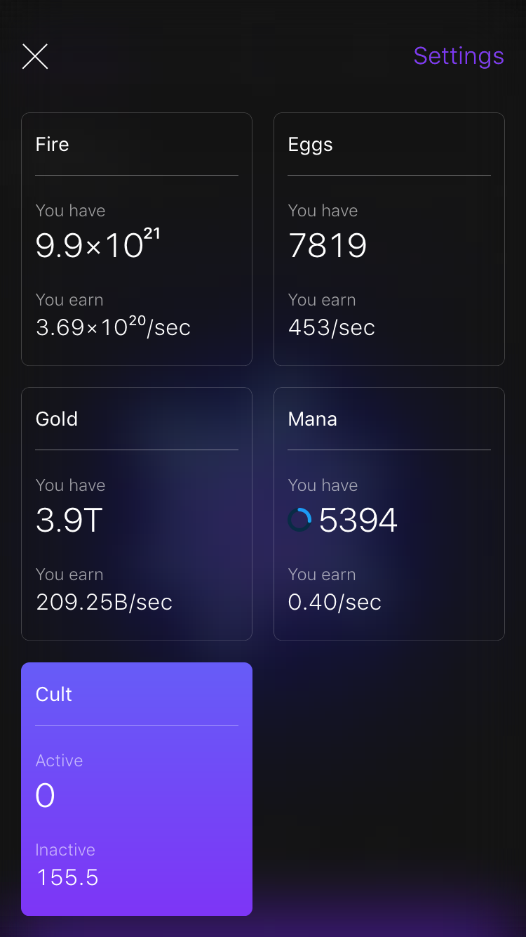 Huge incremental game fan (Tap Titans/Kittens Game/Cookie Clicker/etc). Just starting, but the minimal look and the VFX are a nice touch thus far (more sparkles, please!). The one immediate issue I'm noticing in the UI is that it's hard to tell there's more info on the dragon detail screen pages below the cut, particularly the ones where the button sits flat… See more