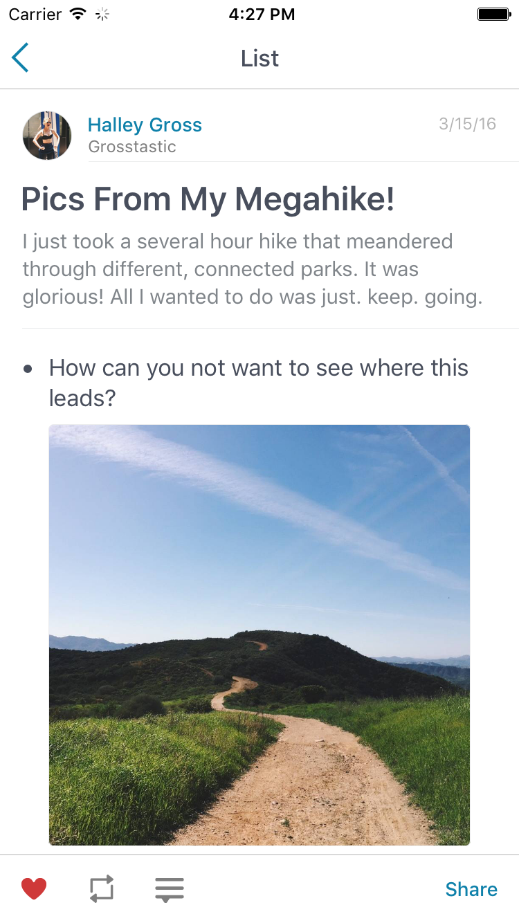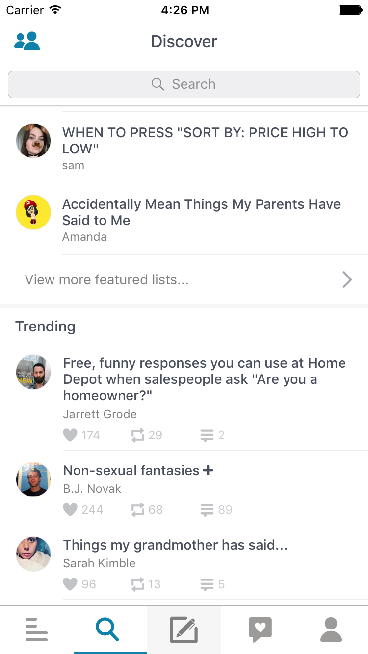@brianp introduced me to @bjnovak ~6 months ago when he was visiting SF and we met nearby Product Hunt HQ to chat about his new project. I love how general the app is, giving room for creativity but still constrained to the popular and well understood list format. They have some awesome publications like The Onion, Wired, NYT, and others on board (althoughβ¦Β See more