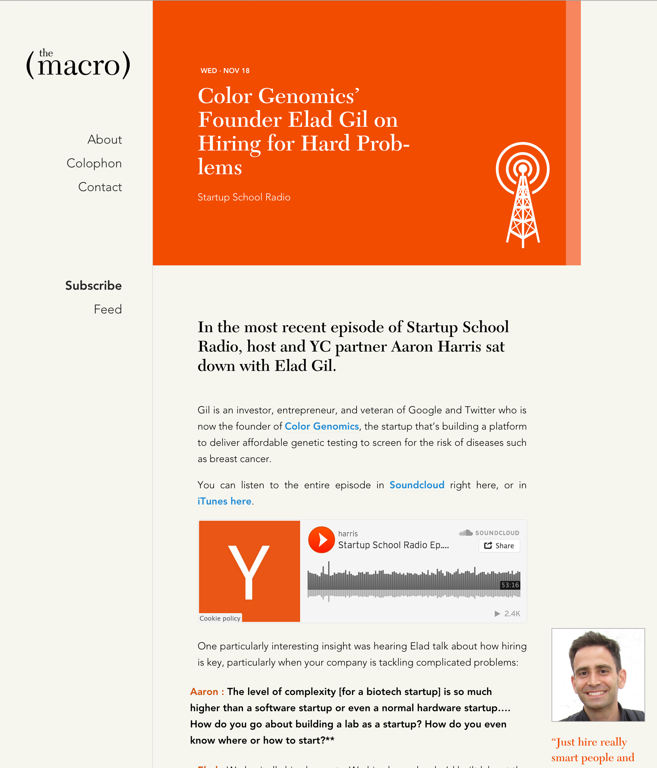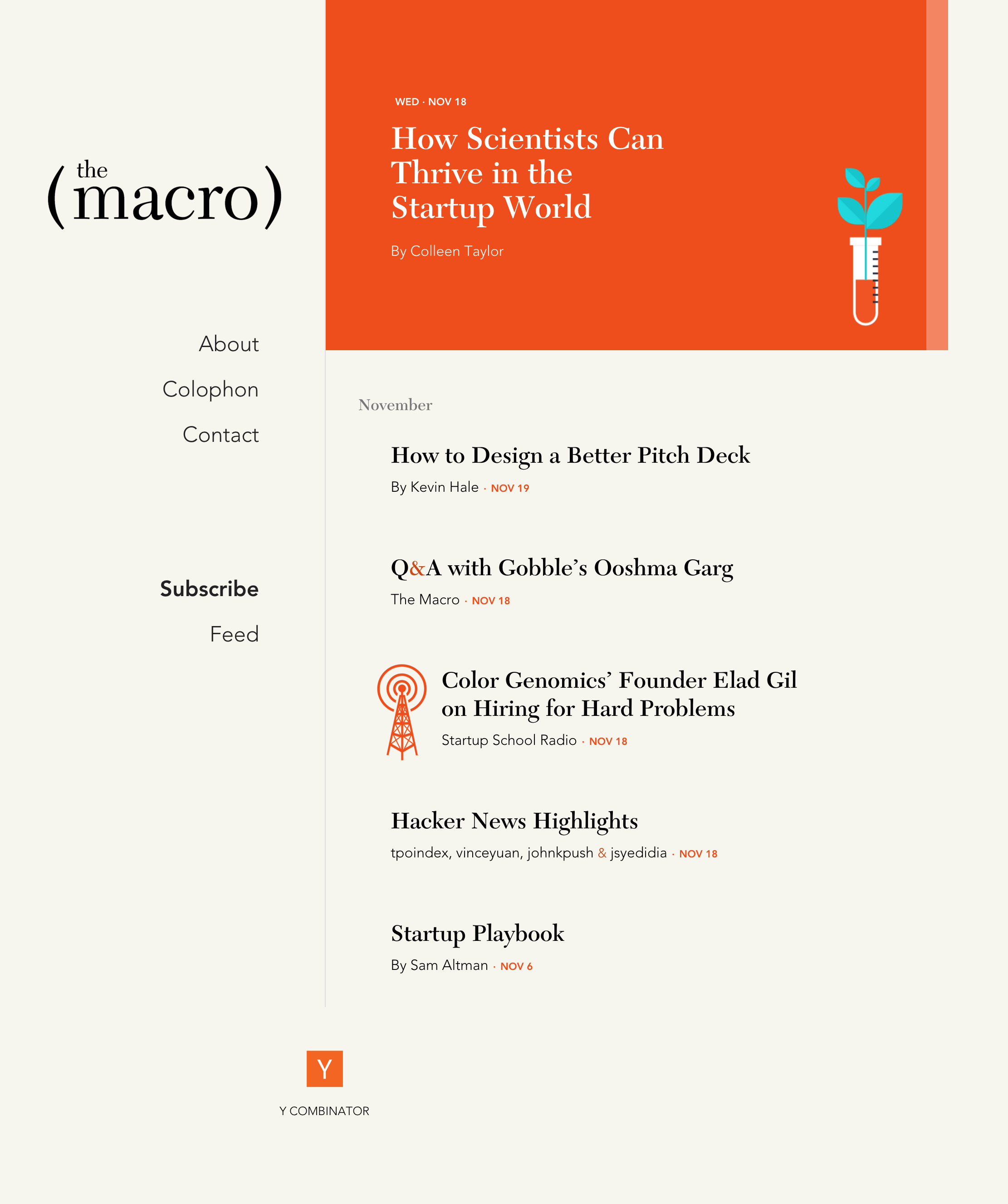 Hey everyone! I'm one of the partners at YC and I designed The Macro and also wrote a article for the launch. Happy to answer any questions about the publication and hear what you'd like to see in the future!