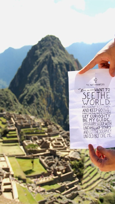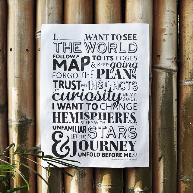Back in 2012, when the Maptia HQ was in the tiny Moroccan fishing village of Taghazout, our team wrote a travel manifesto, pledging to go out and explore the world. It begins "I ____ want to see the world" so you can sign your name and take a photo of your copy of the manifesto somewhere awesome.