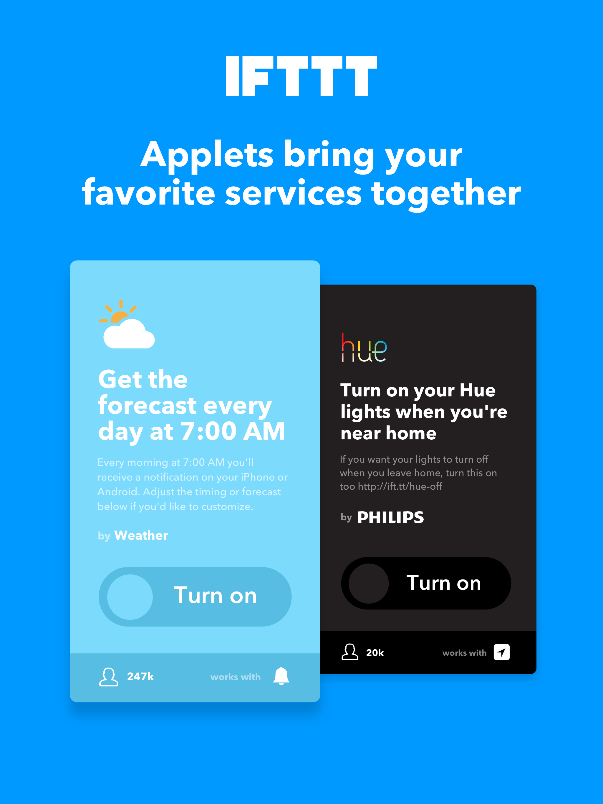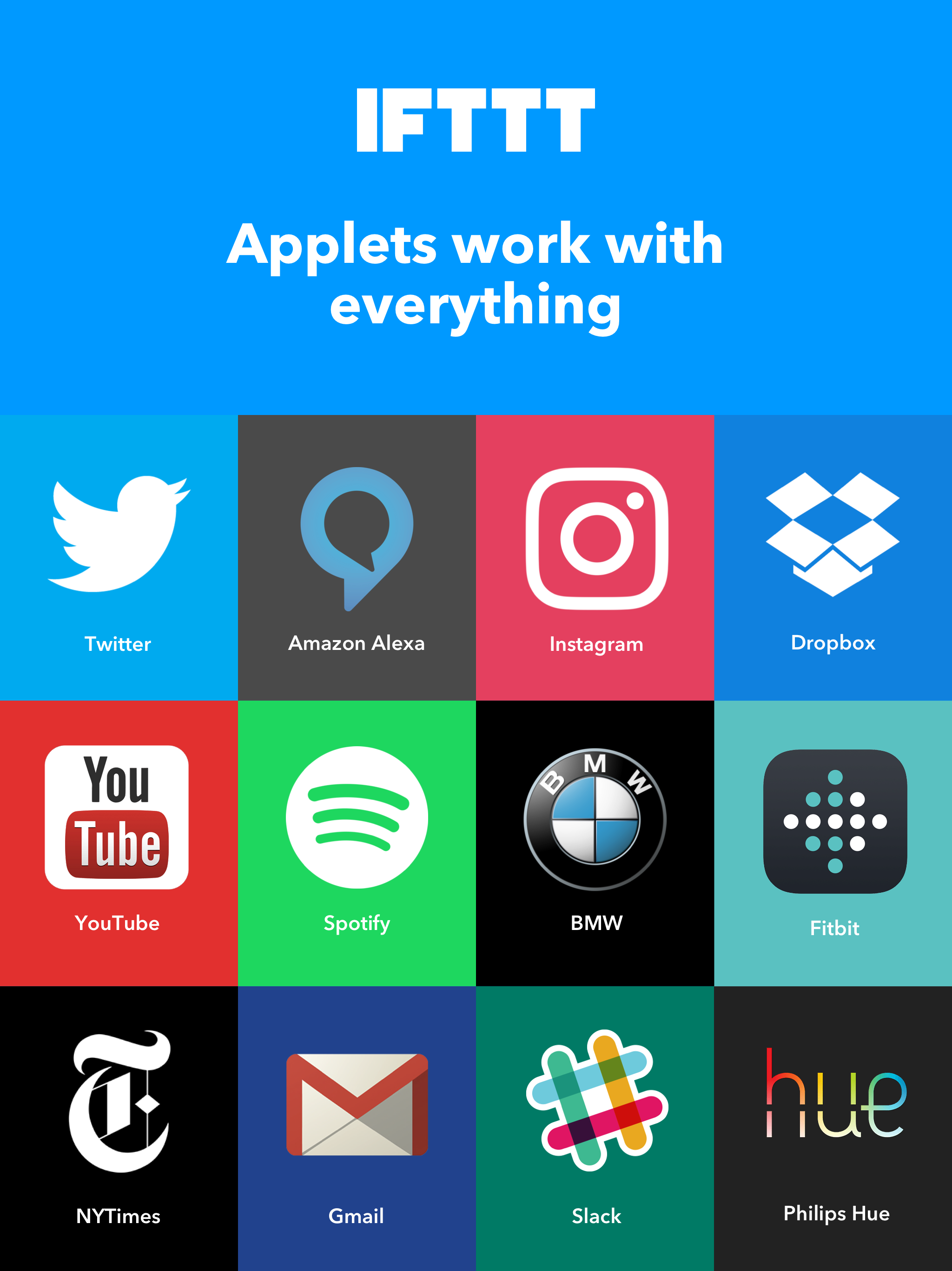 Every day we get 100s of requests to make IFTTT do more, multiple actions, conditionals, etc. We've always believed that we could make something more powerful AND easier to use. Applets allow a broader audience to turn on new experiences for any of the services they use. They also allow those ready for something more powerful than a just a recipe to access t… See more
