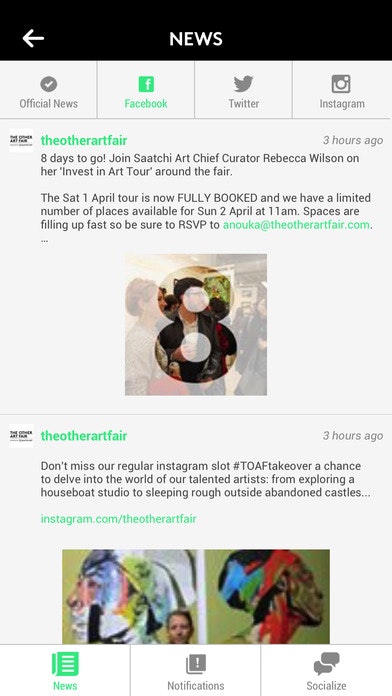 "The Other Art Fair App is your official guide to the art fair. Organize and personalize your fair experience in one place. Browse artists, discover our Fair features, find your way around with the floor map, and create your own list of your favorite artists."