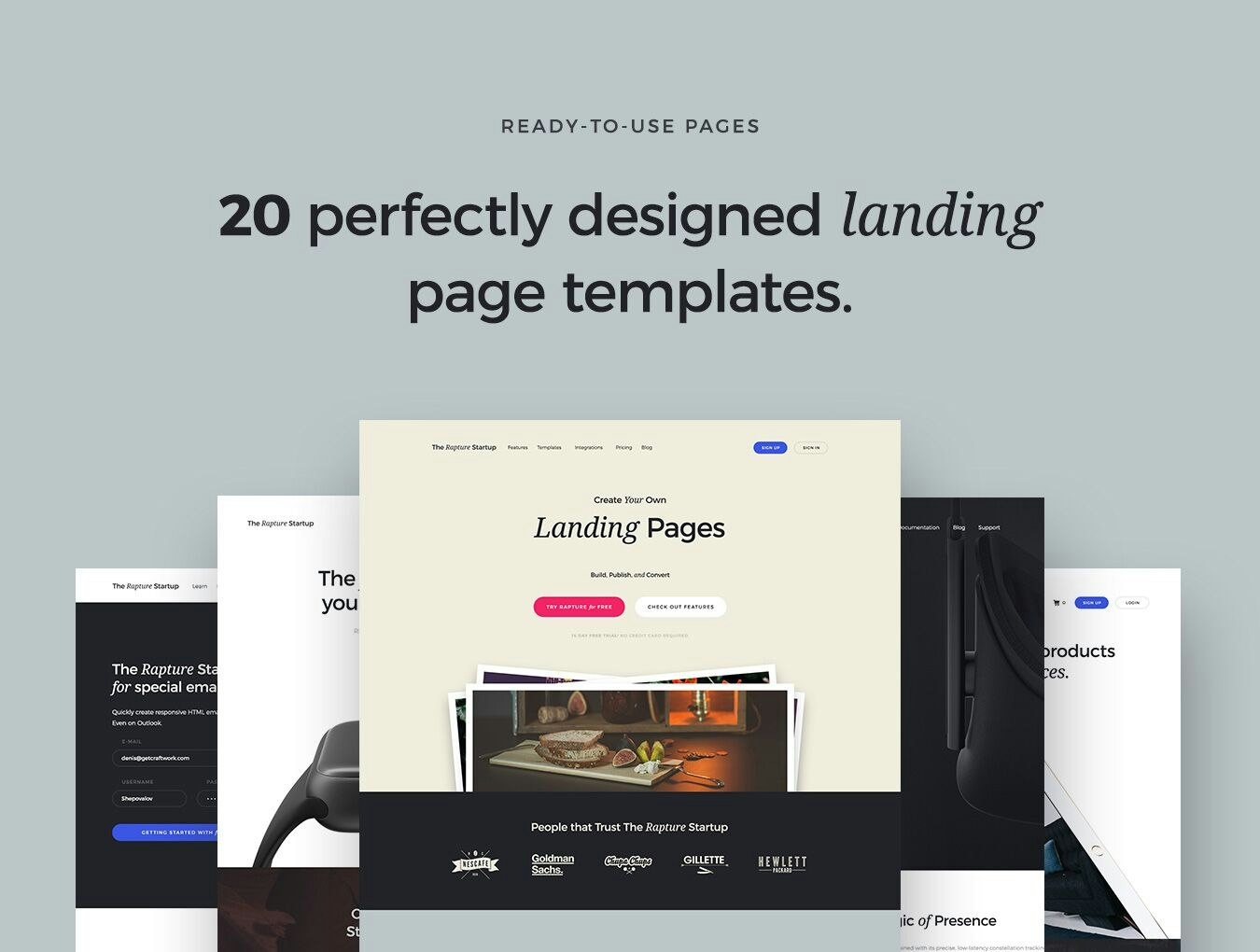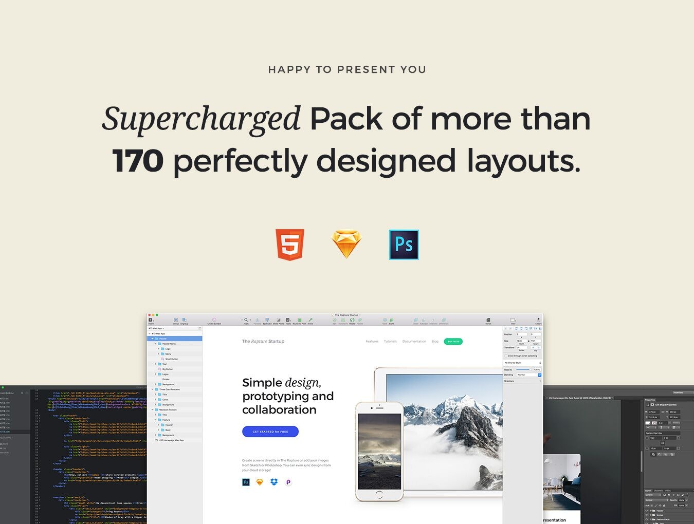 The Rapture Startup Framework is for creating landing pages and simple websites. It is useful for designers (both Sketch and Photoshop users) and coders. It is easy to use and provides clean HTML5. There are 170 cards that you can mix like lego bricks. And there are 20 ready-to use landings, for those who are in a hurry.