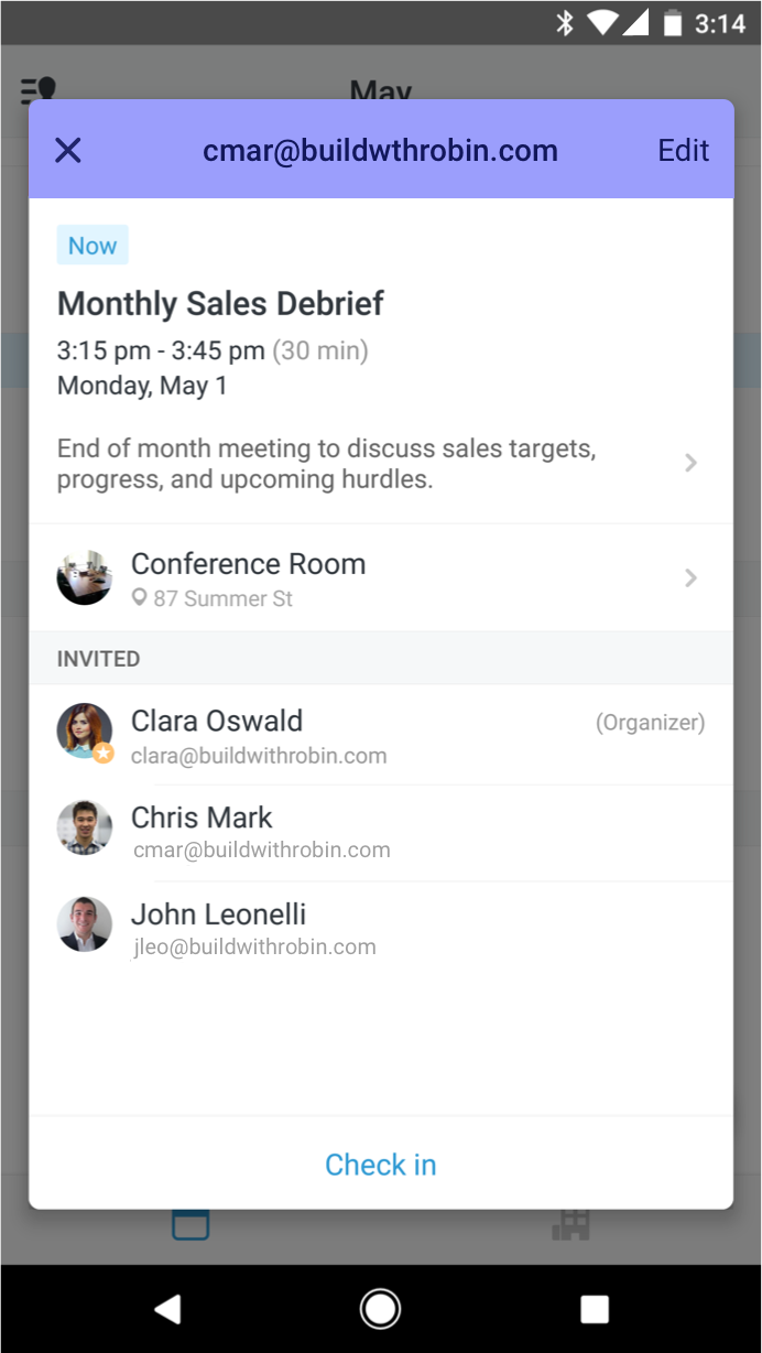 My name is Ryan MacInnis and I'm with the Robin team. Robin is a scheduling platform for your office and everything in it. Today we're excited to share our newest mobile app (iOS and Android) that's one place to manage both your personal and work calendars. See your schedule for the day and search meeting rooms based on room size, ameniti… See more