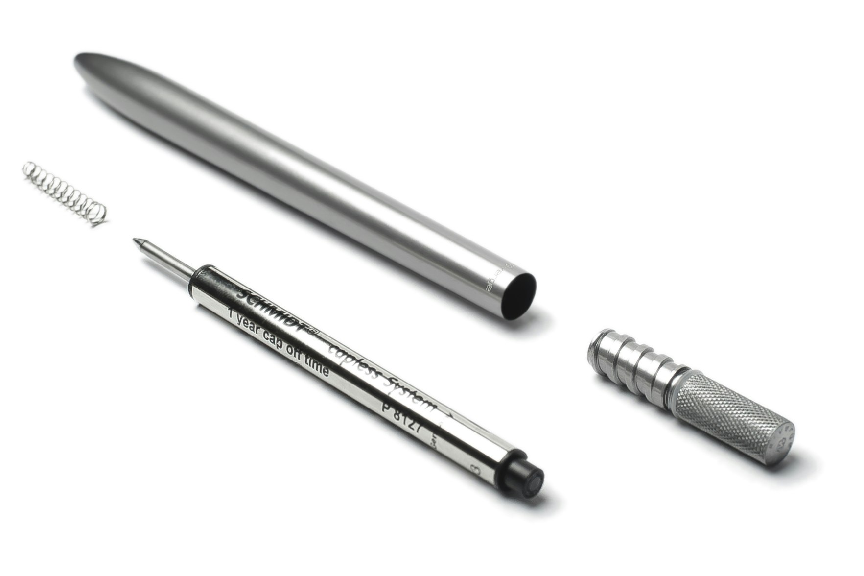 First, this is a really great looking pen, overall. My only comment is possibly subjective, but I would expect the most minimalist pen not to have 2 logos on it. I think the one on the screw is plenty–and is actually a nice touch as there is already texture on that component,–but the one on the barrel upsets the cleanliness of the design for me :-(