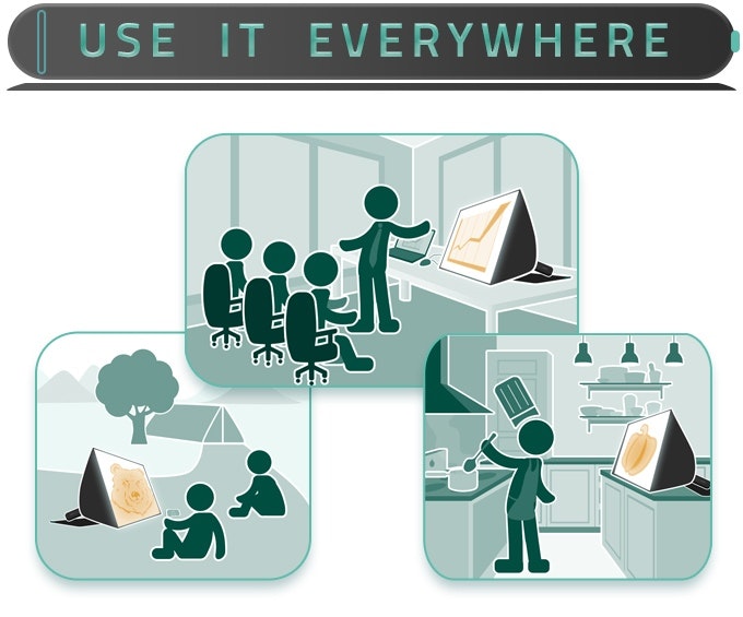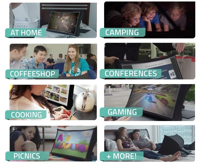 SPUD is a high-resolution 24-inch screen with the awesome benefit of ultra-portability. It collapses just like a ruggedized umbrella to the size and weight of a paperback book - making it ideal for anyone on the go.