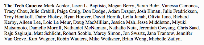 This is a little experiment I've wanted to try or a while. The Tech Caucus is a weekly newsletter that polls ~50 of the tech industry's leading investors, entrepreneurs, journalists, and execs to find out what's on the collective mind of tech's leaders.