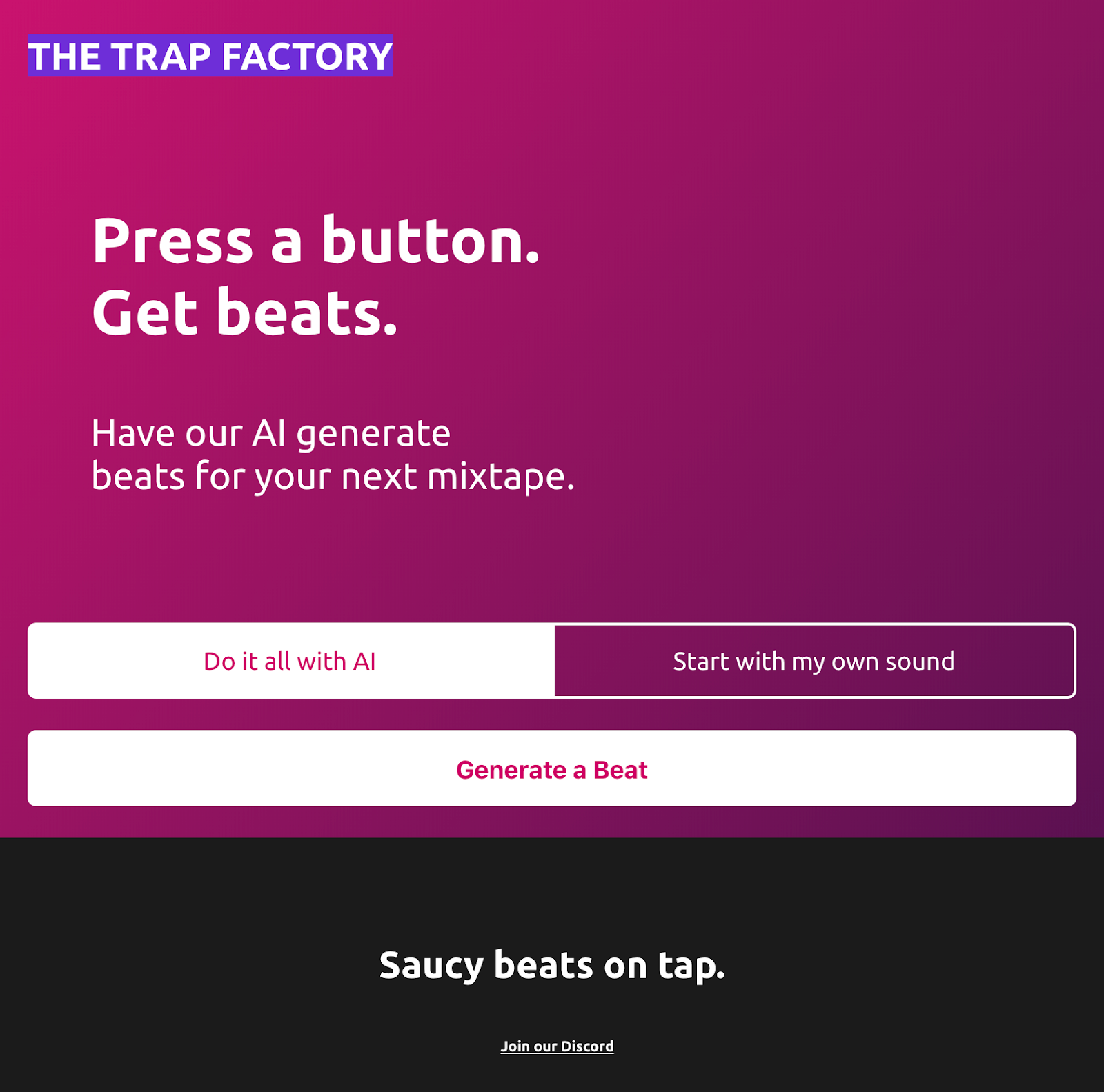 The four of us all love music, and have experience making trap beats. But creating beats has a lot of friction, and if you don't have any experience, it can be really daunting and overwhelming!
