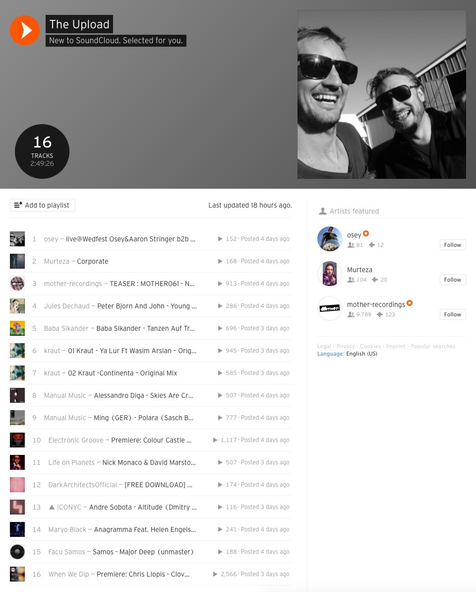 I love you man! Thanks for that. And Soundcloud more and more. I work with music curation and the regular timeline was a pain in the a*s with tons of reposts not useful. As SC limits following to 2000, I had to create more accounts to follow 6000+ today. This, together with Discover tool, I use weekly, can help me a lot. Thanks.