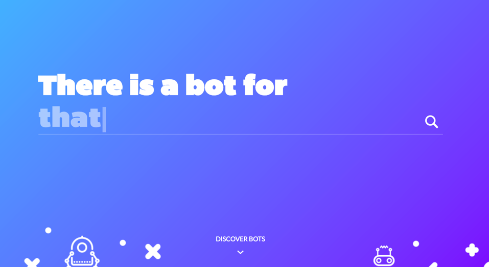 "There is a bot for that" is a search engine for bots and it’s available on: