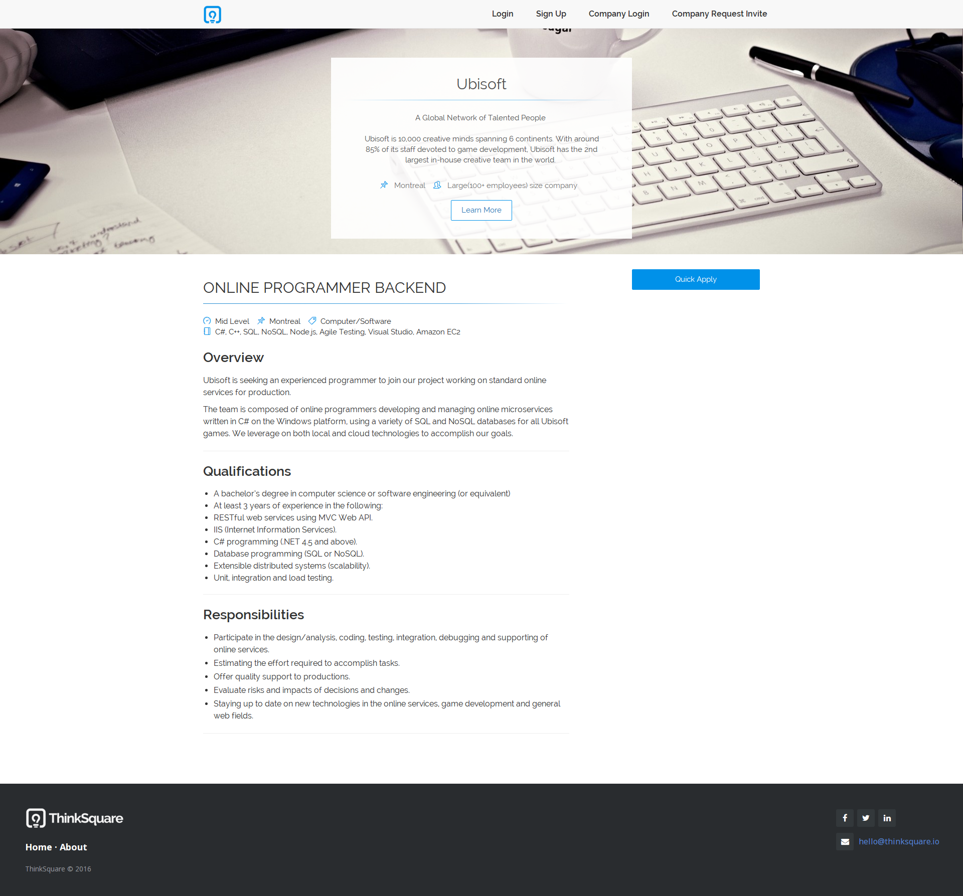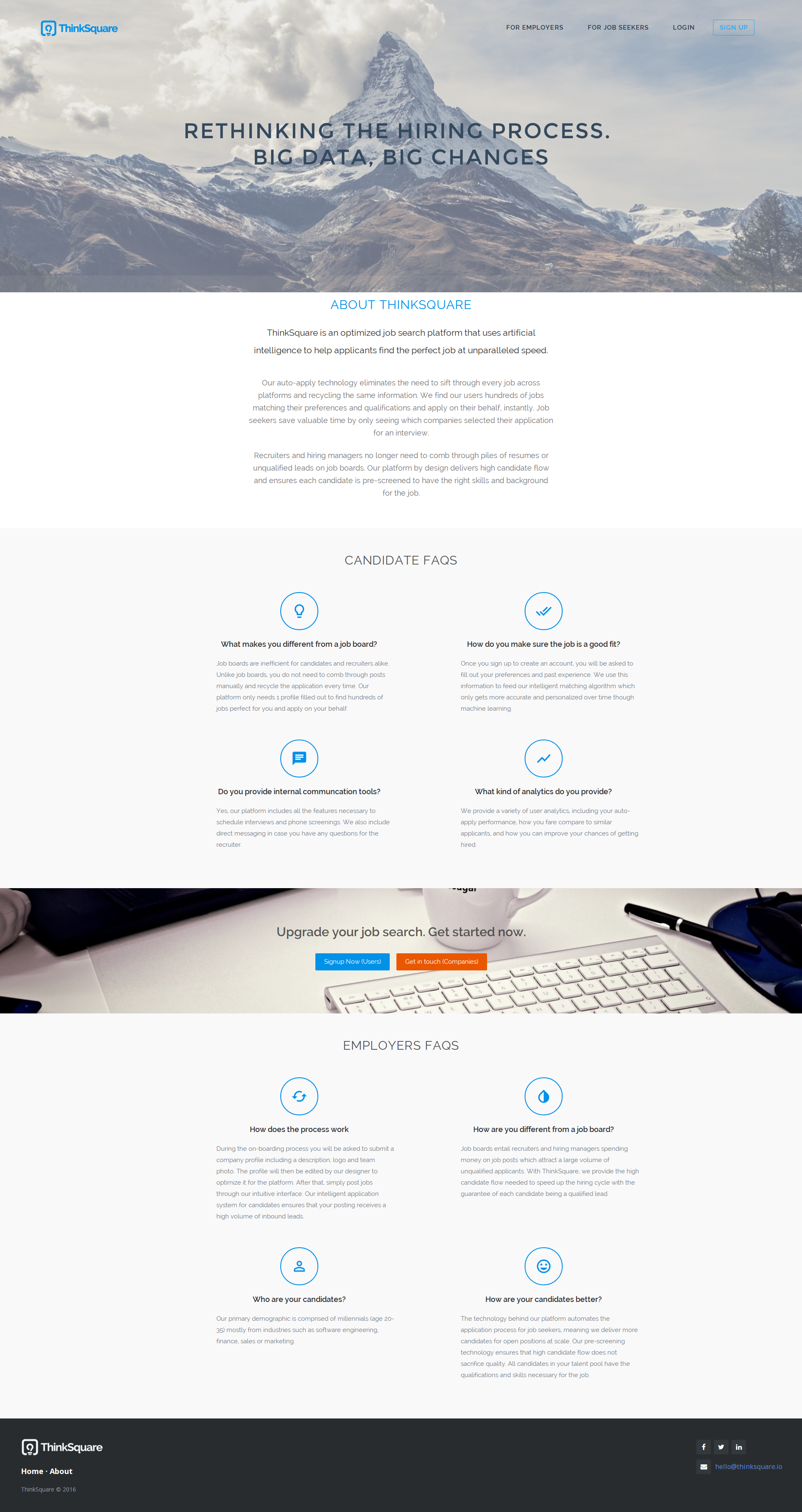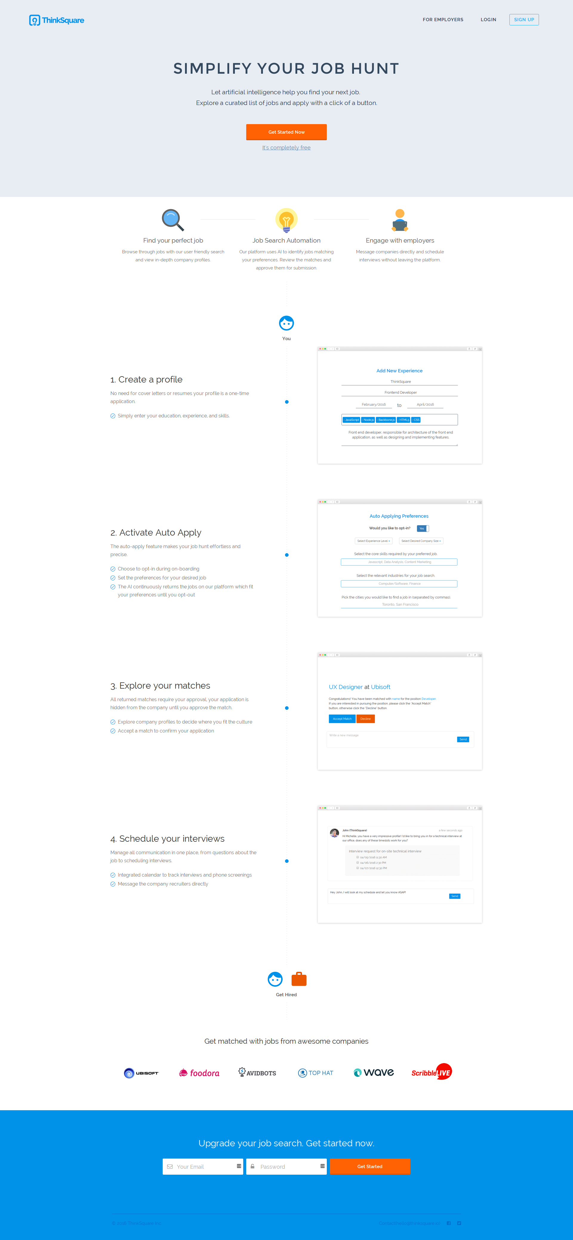 ThinkSquare is an A.I powered job matching platform. No cover letters or resumes required, one profile brings you a curated list of jobs personalized to your skills, experience and preferences.