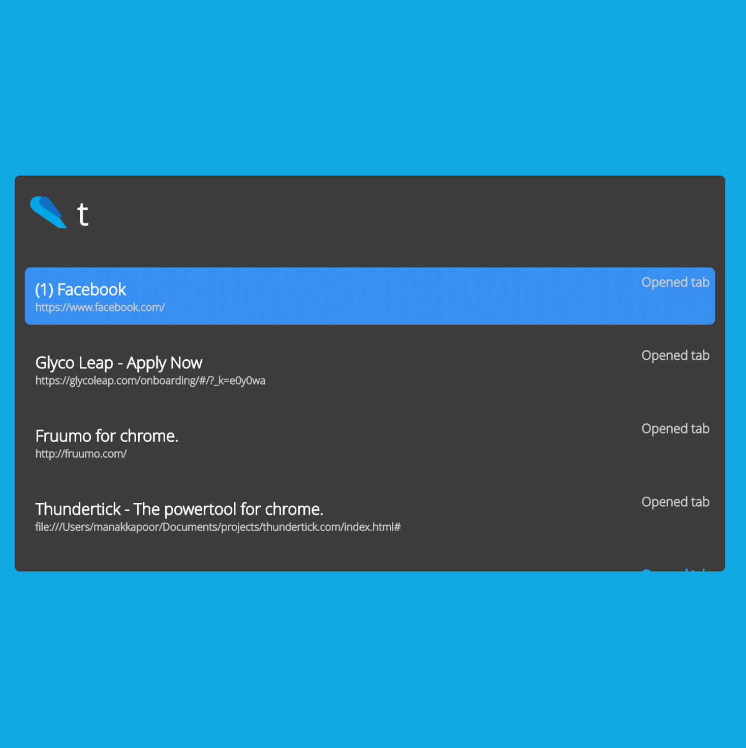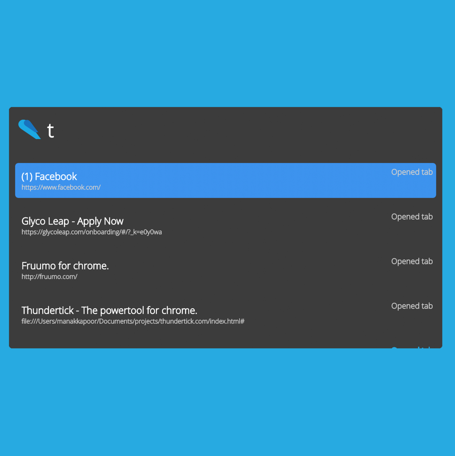 You can now search through every part of your browser including all your bookmarks, history, open tabs, downloads, installed apps and more...