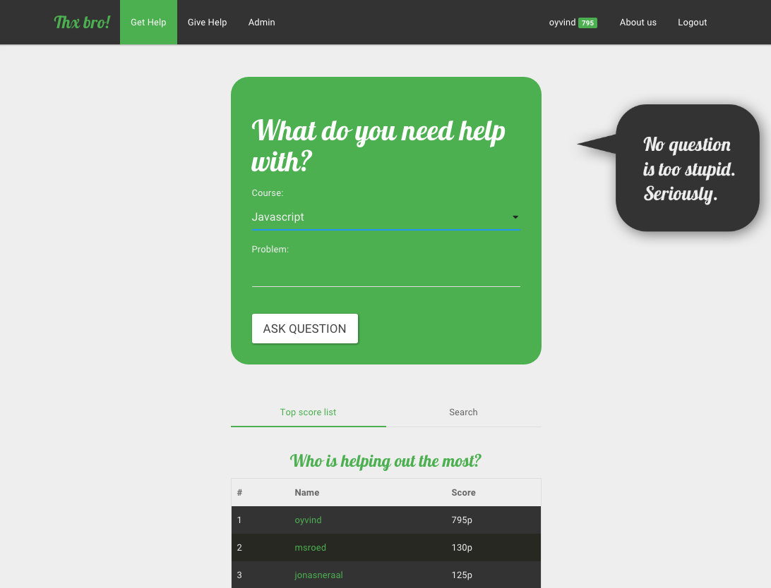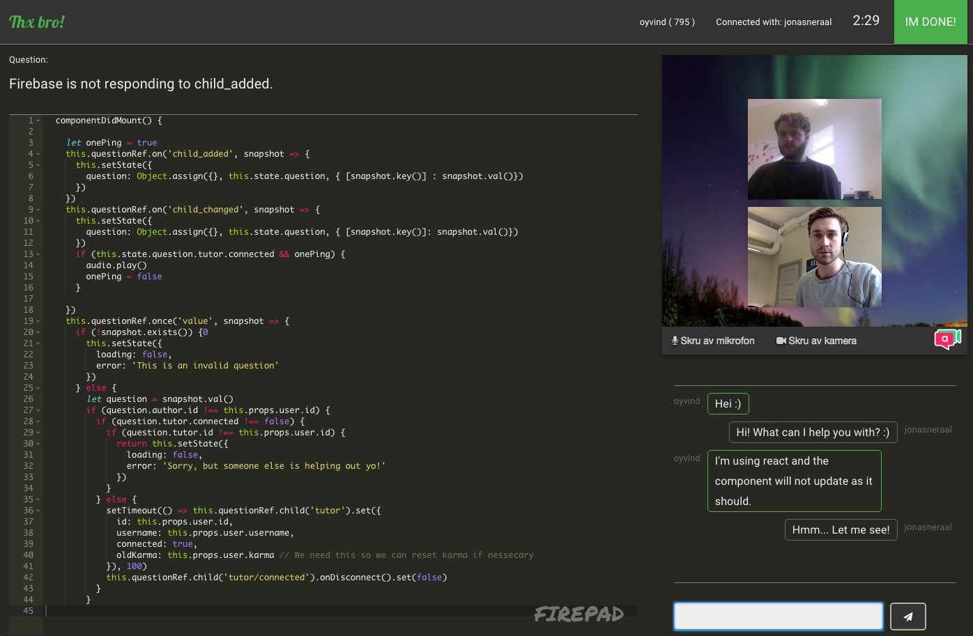 Hi, my co-founder Jonas and I decided to make Thx bro because we found that getting help on Stack Overflow can be a tedious process. You have to formulate a good question and then it might take days before you get an answer. We feel that getting real-time help is far more helpful and fun! Thx bro is free and low threshold solution that is open to everyone. We hope you like it and feedback is of course highly welcome ;)