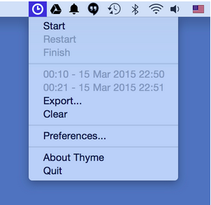 I recently started suffering from back pain due to prolonged amounts of sitting in front of the computer. Thyme has been very helpful in reminding me to stand/take a break with its minimalist timer in the OS X menubar. It is also very helpful for timing how long you spend doing something. Great little free app