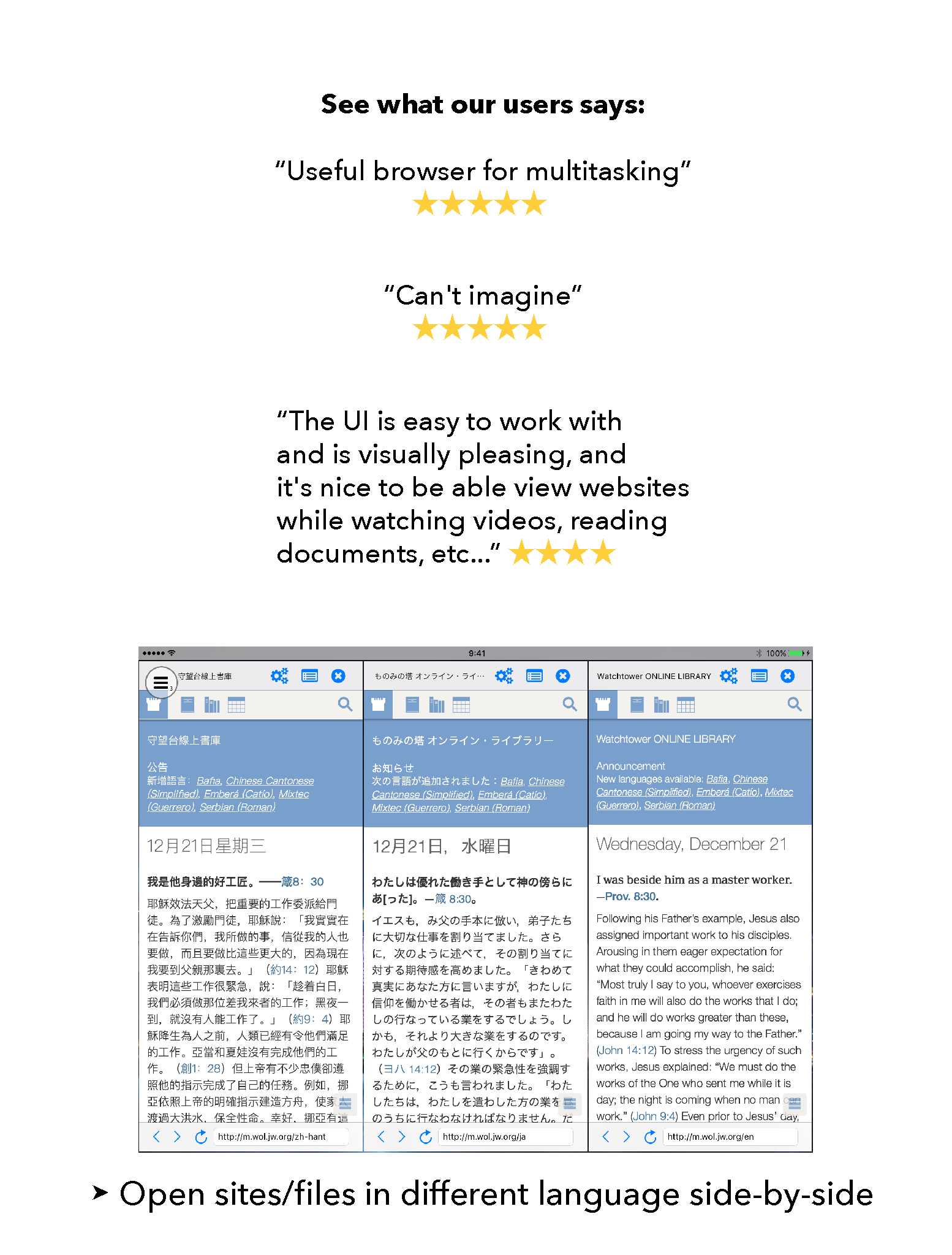 TileBrowser is created to solve our need of a multi-window browser which can view multiple websites, document or media files at the same time. Hope you enjoy using it like we enjoy creating it!