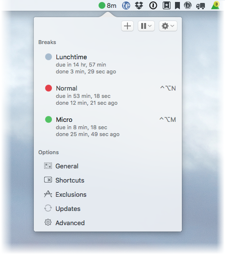 Optionally show a countdown to the next break in the menu bar.