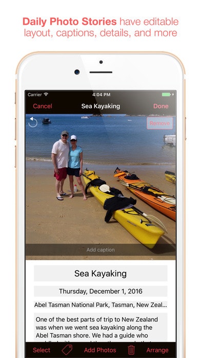 Instantly organizes all your photos into daily photo stories