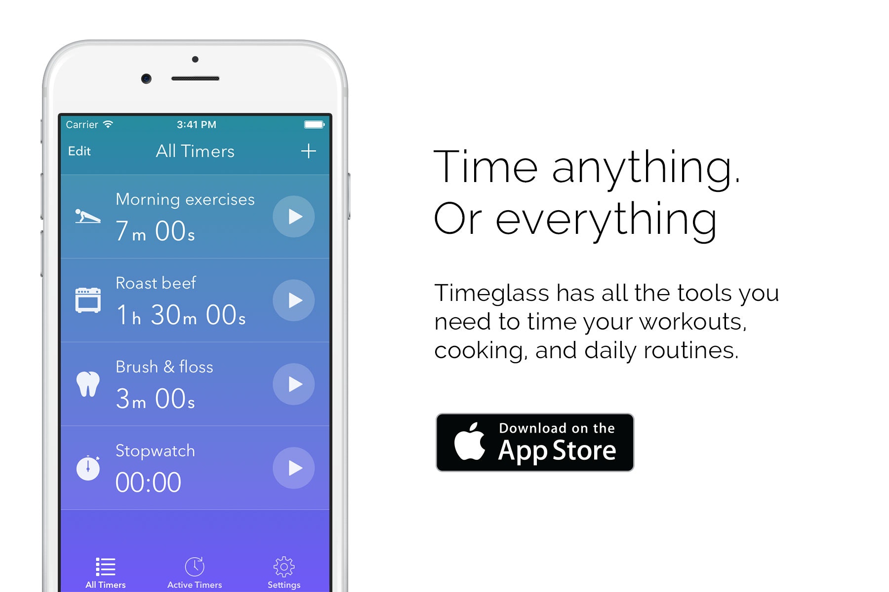 Hi everyone! We created Timeglass because we couldn't find a decent app that was flexible enough to time the things in our life we wanted to time. A lot of apps allow multiple timers side by side, but we found this was wasn't enough when doin… See more