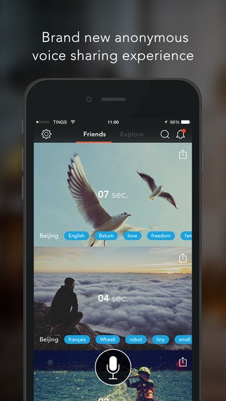 This looks pretty nice. Tings is a social networking iOS app that connects people using the most human form of expression, our voice, in a fun and secure way: