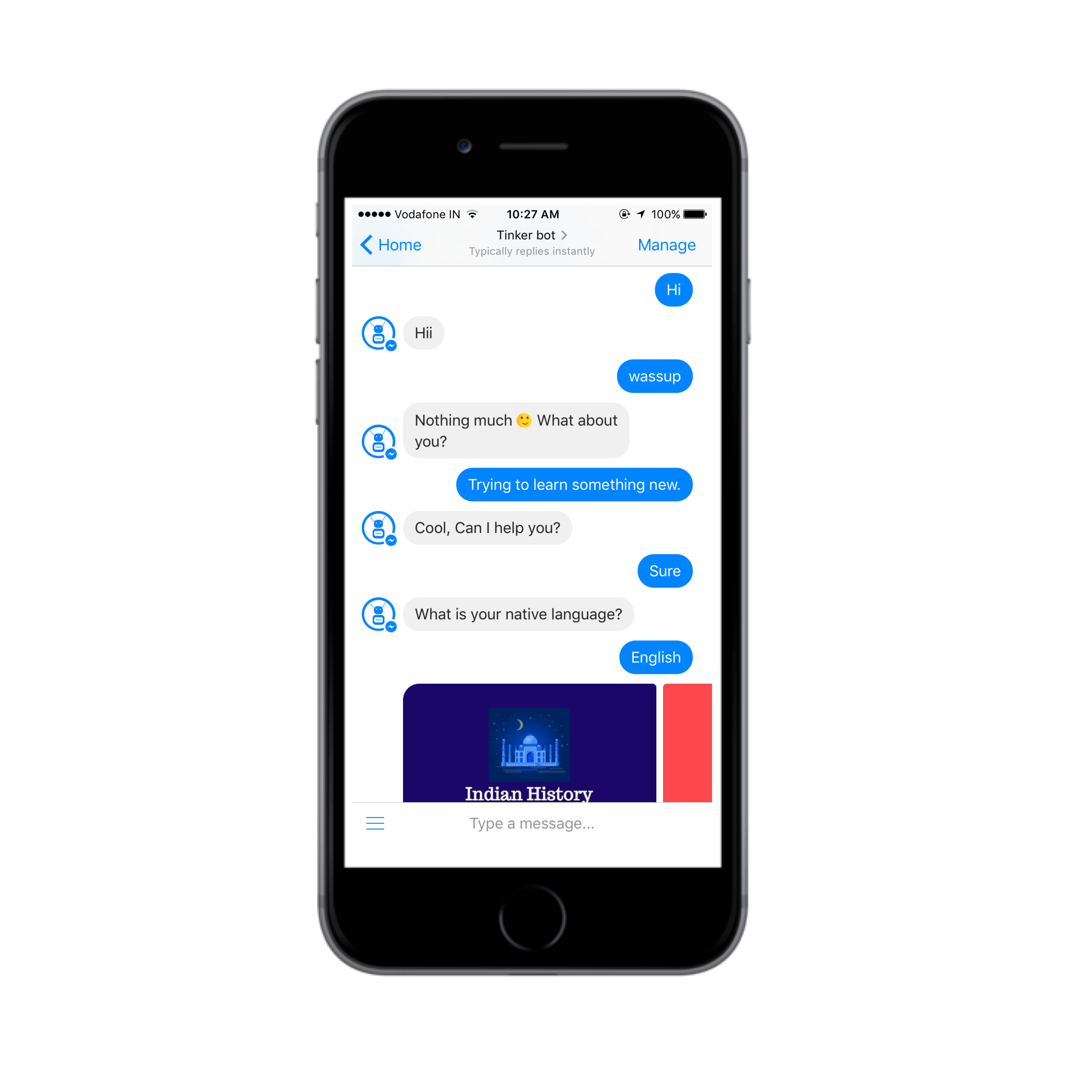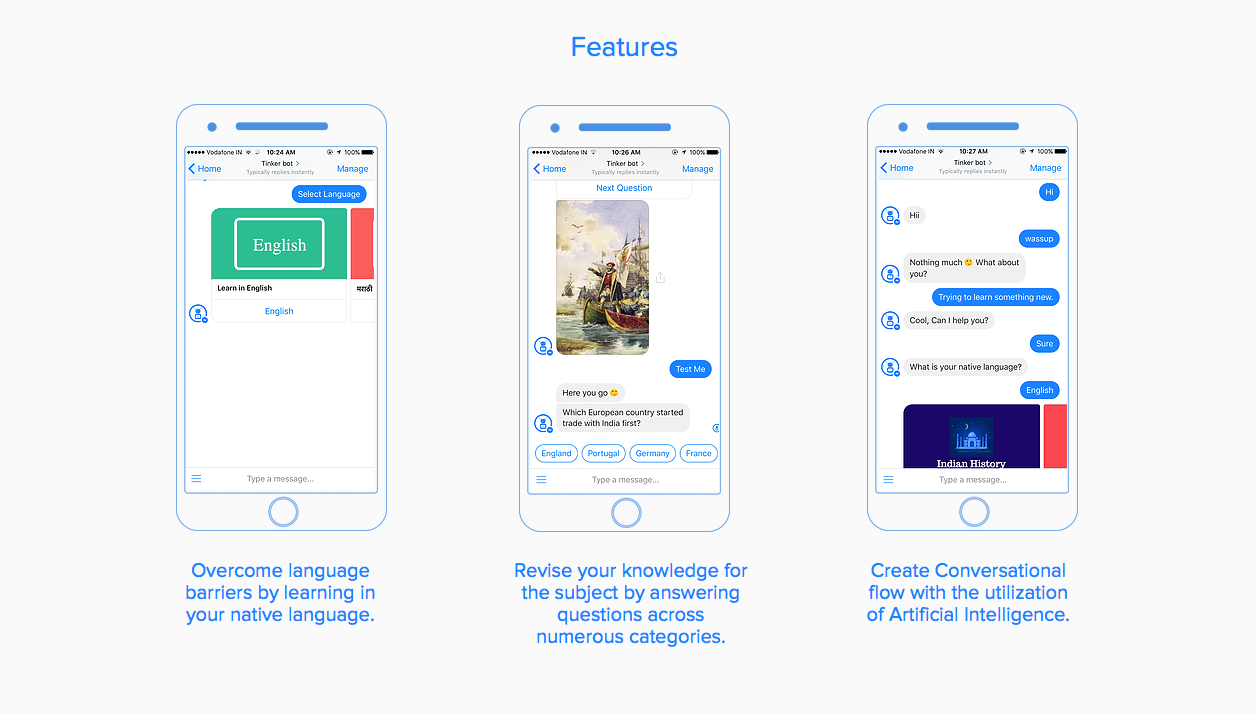 Tinker Bot was started with an intention to change the way students are educated in India. The Bot is based on Artificial Intelligence and uses Natural Language Processing to communicate with users. The Bot uses various curriculum from various boards to teach new and interesting things.