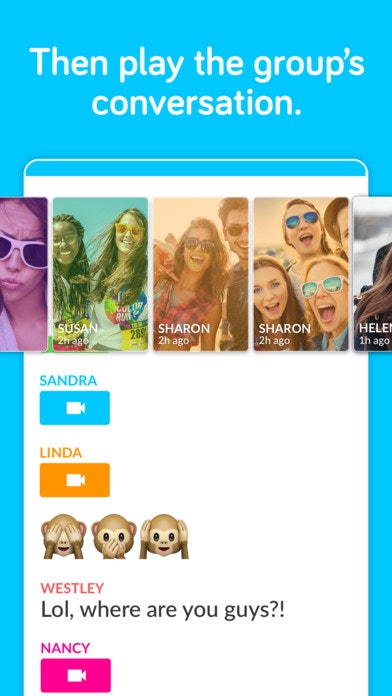 To do this, the UX is designed around a big blue button. Hold it to record tiny videos of any length, release to send them to a bunch of friends. Tiny videos are of small file size, so they send pretty fast. This is good for mobile … See more