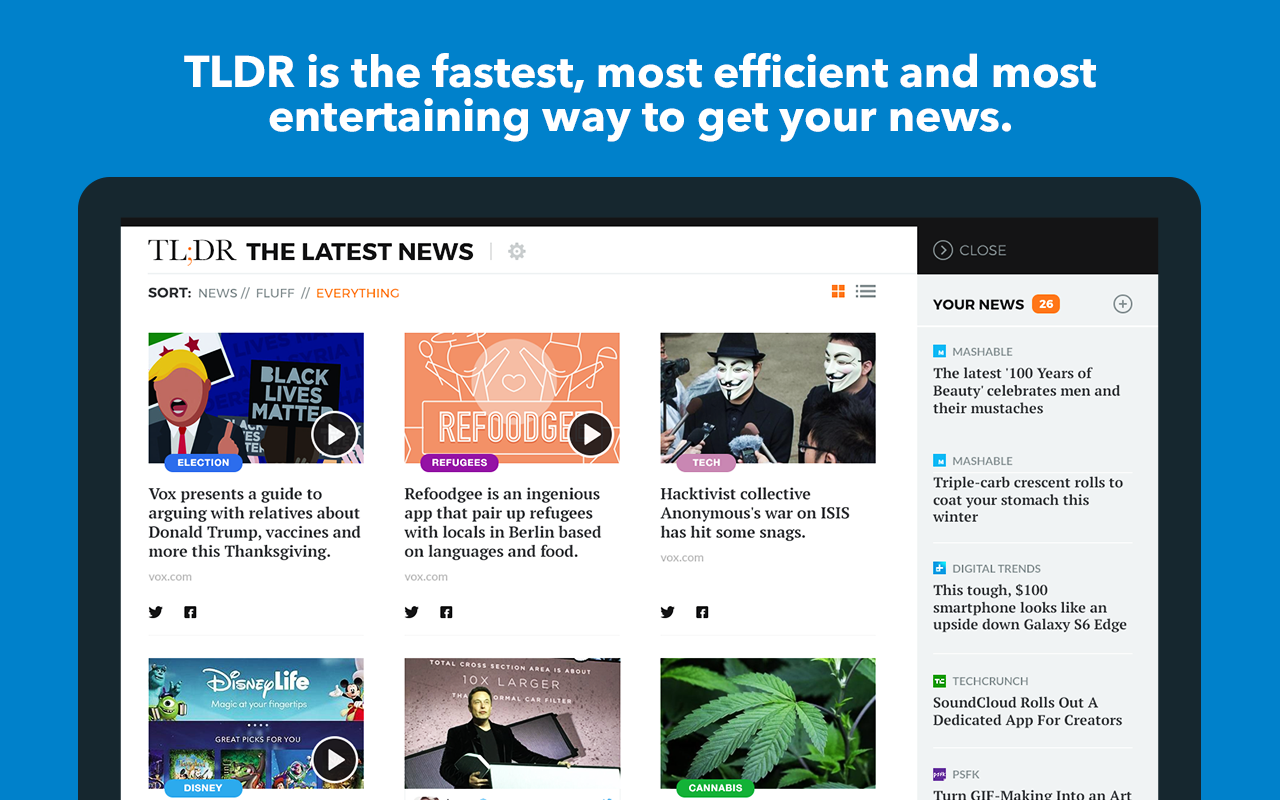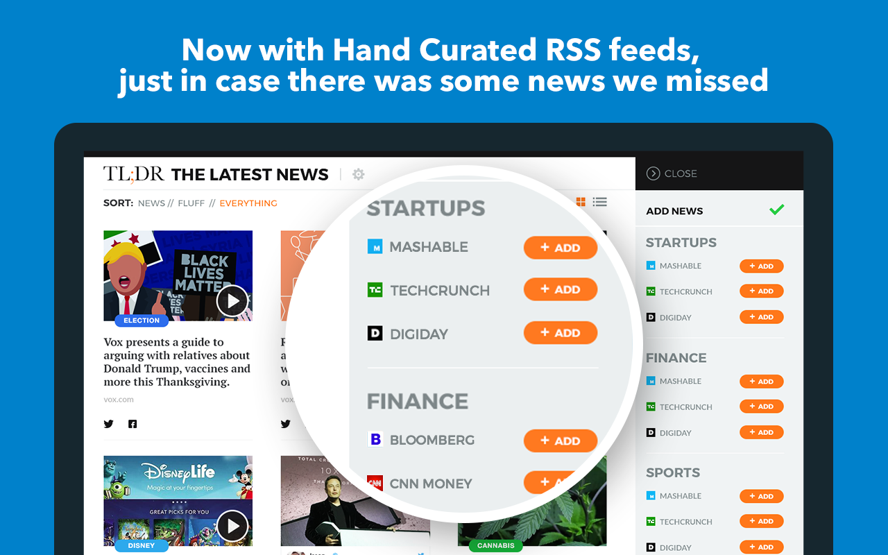 Presenting our first significant upgrade to TL;DR! (Many of these changes and improvements were based on feedback from Product Hunt readers, so thanks!) The biggest change is that we’ve added some light filtering tools. So, if you just want hard news, you can turn off the “Fluff.” And if you want more Sports and Business, we have some curated RSS feeds you c… See more